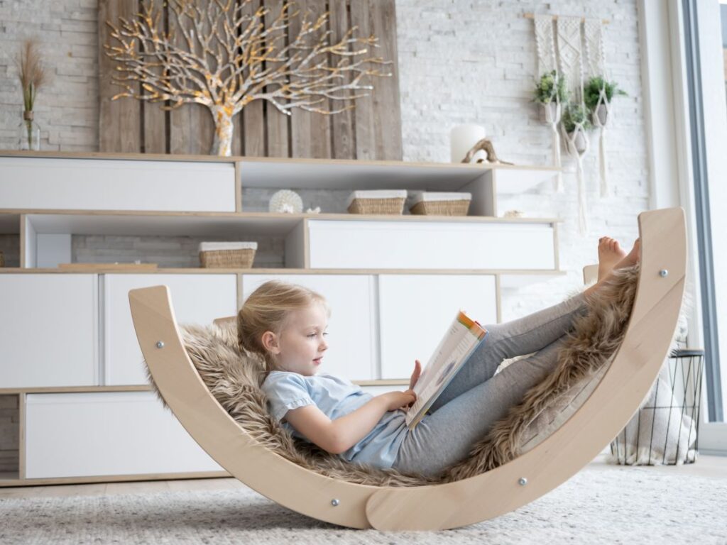 Diese Bewegung wirkt oft beruhigend und fördert gleichzeitig Gleichgewicht und Körperwahrnehmung. Auch ältere Kinder nutzen den Bogen gerne, um nach einem aktiven Tag zur Ruhe zu kommen.