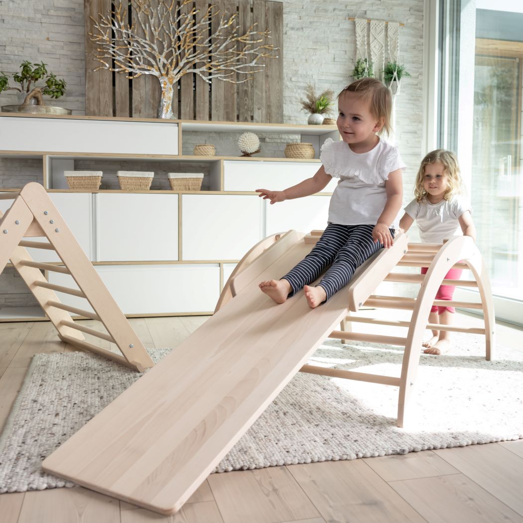 Ein Kletterbogen kann später als Wippe, Höhle oder Teil eines Bewegungsparcours im Kinderzimmer genutzt werden.