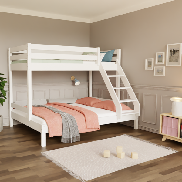 ARARAT Etagenbett 90×200 / 140×200 – 3 Personen – Massivholz Kiefer – Natur/Weiß