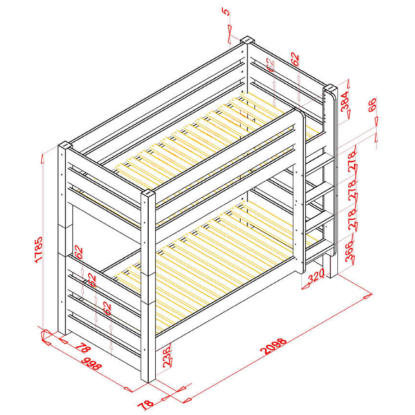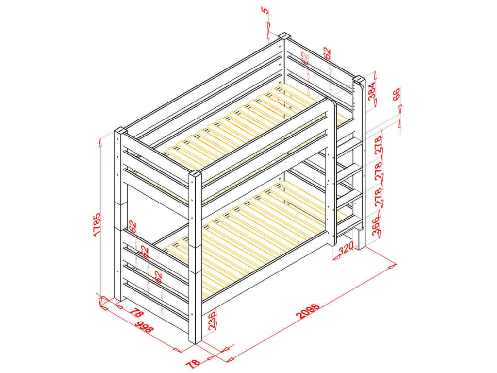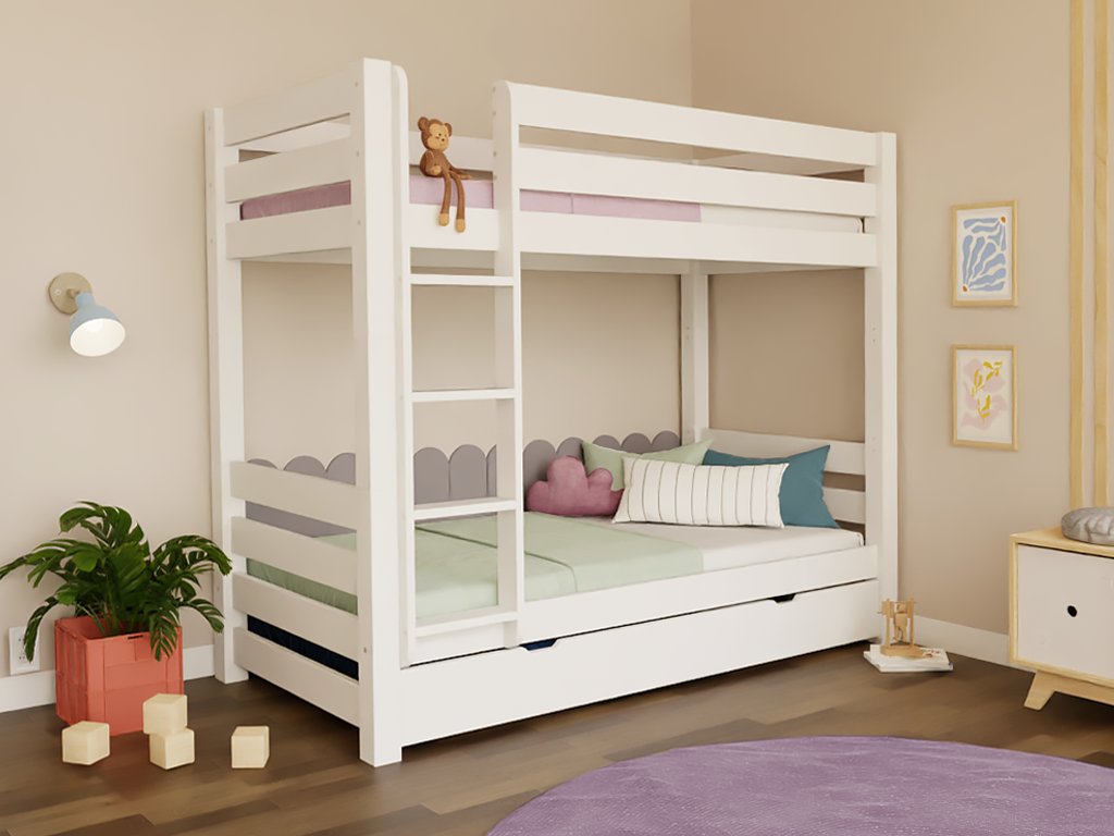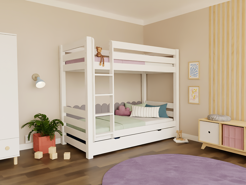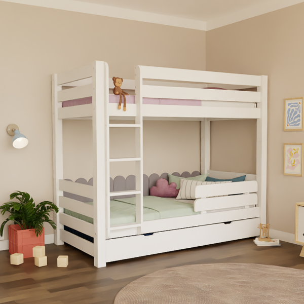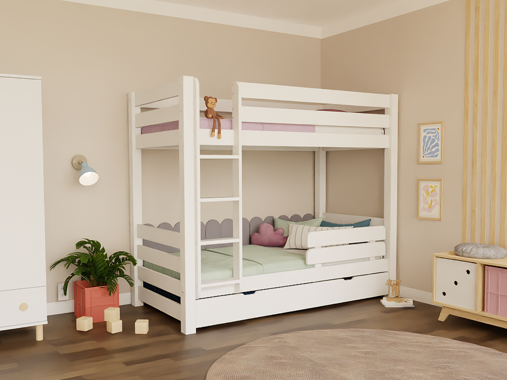 - Bestellbar mit/ohne Gästebett, Schublade und abbaubare Barriere für das untere Bett