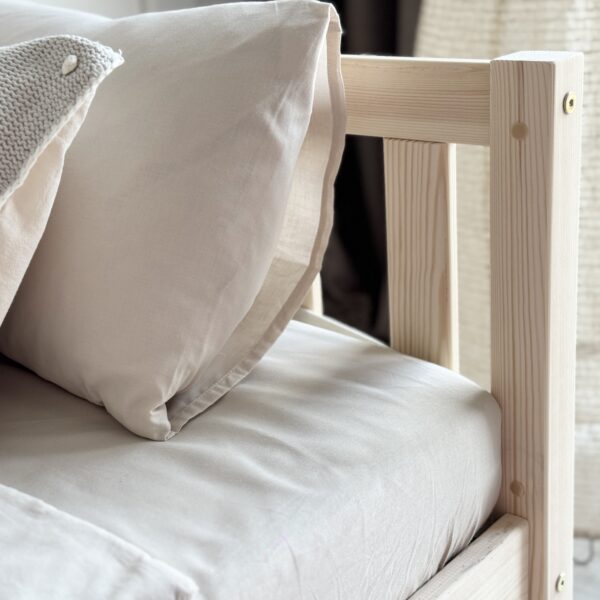 – für größere Kinderbetten: 90×200 cm - Bei einer 12 cm dicken Matratze schläft das Kind auf einer Höhe von ca. 38 cm