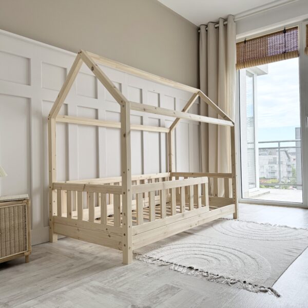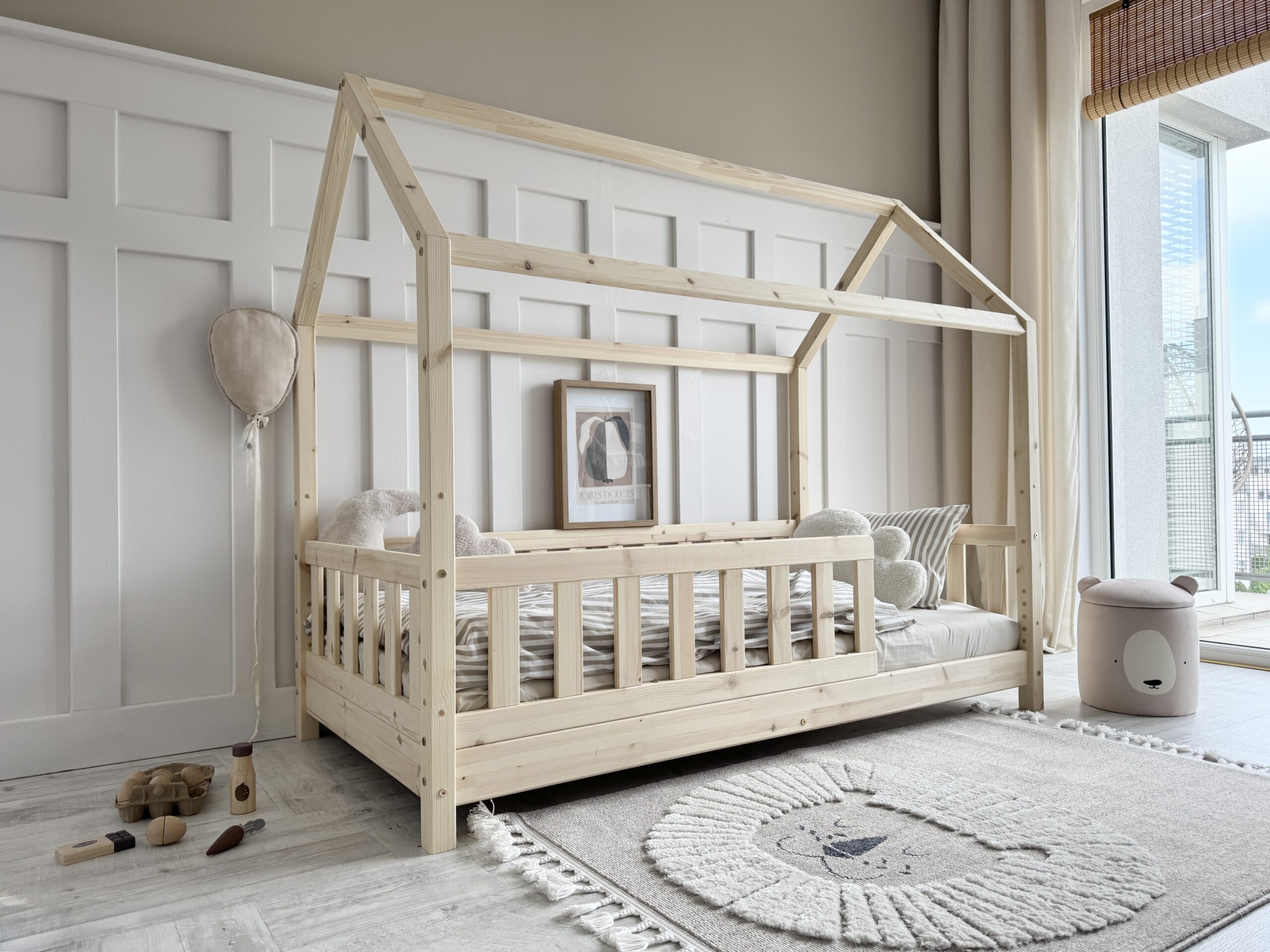 Das Kinderbett Hausbett BLANCO von 90×190 cm bis 140×200 cm ist ein einzigartiges Bett im skandinavischen Stil aus der PureWood-Kollektion, das speziell für Kinder und ihren komfortablen Schlaf entwickelt wurde.
