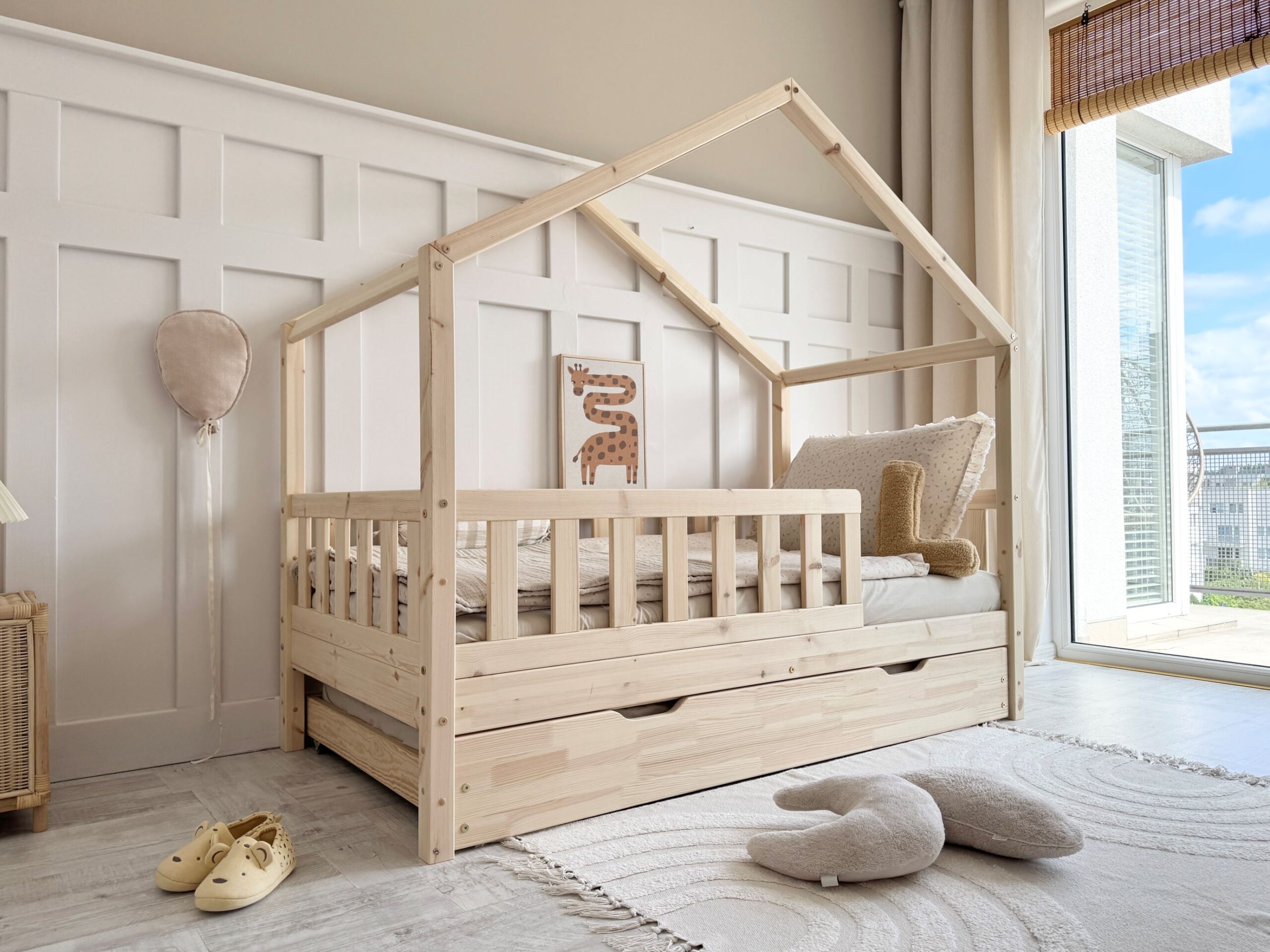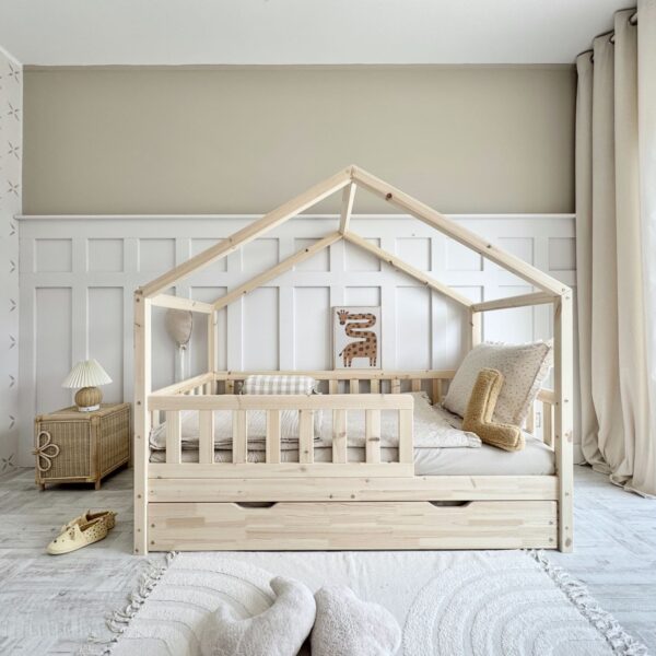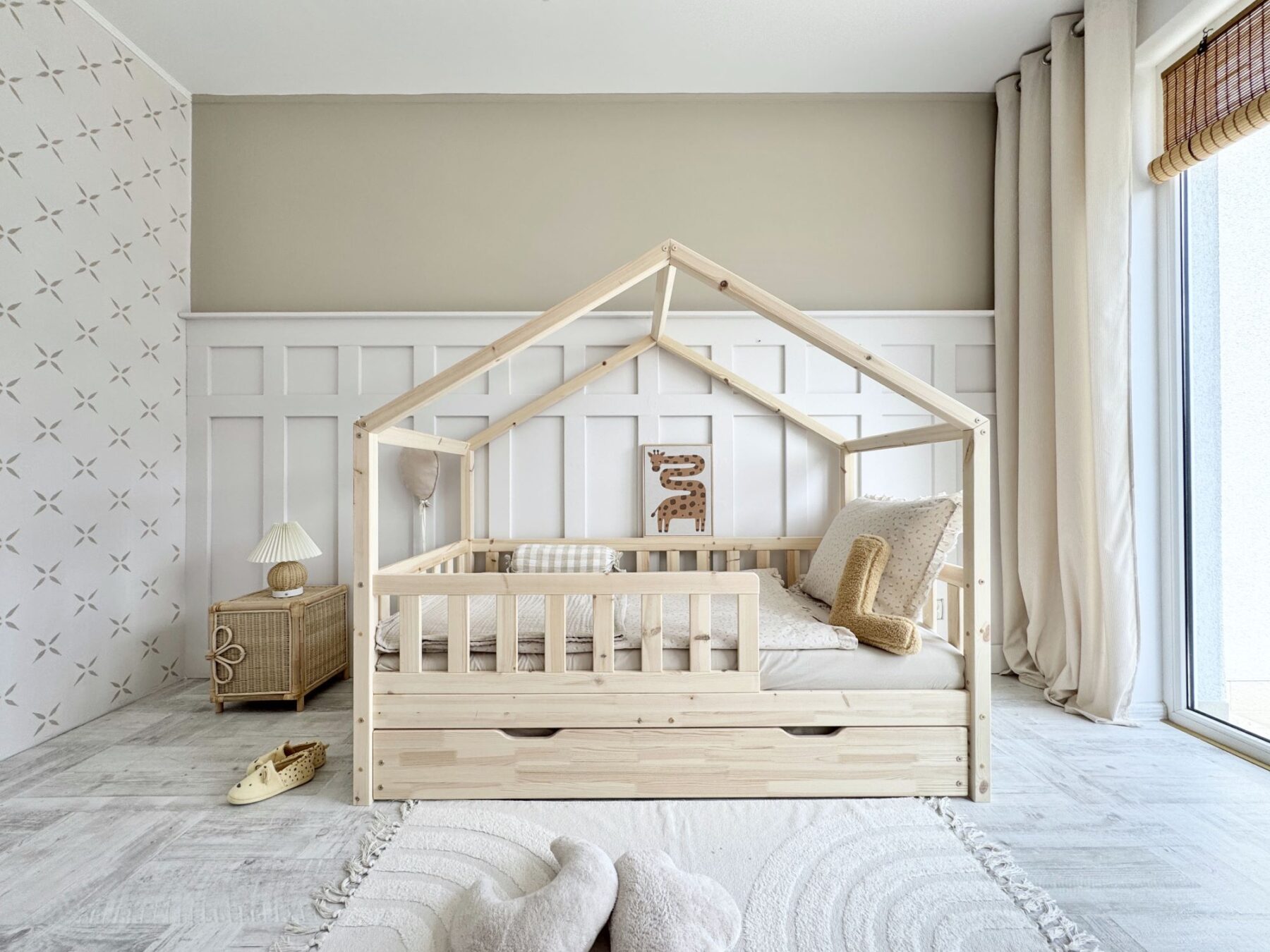 Dank seines schlichten und dennoch charmanten Designs in Hausform passt das Bett perfekt in jedes Kinderzimmer.