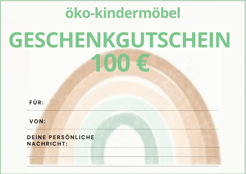 - Einlösbar für unser komplettes Sortiment an ökologischen Kindermöbeln und Spielzeugen.