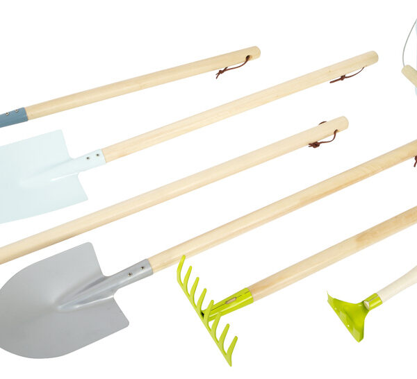 Dieses umfangreiche Gartenwerkzeug-Set in modernen Farben besteht aus Spaten, Schaufel, Rechen, Harke, Besen, Eimer und zwei kleinen Gartengeräten und bietet für jede Tätigkeit das passende Equipment. Nach der Arbeit können die Werkzeuge aus robustem Holz und Metall an den praktischen Schlaufen ordentlich aufgehängt werden.