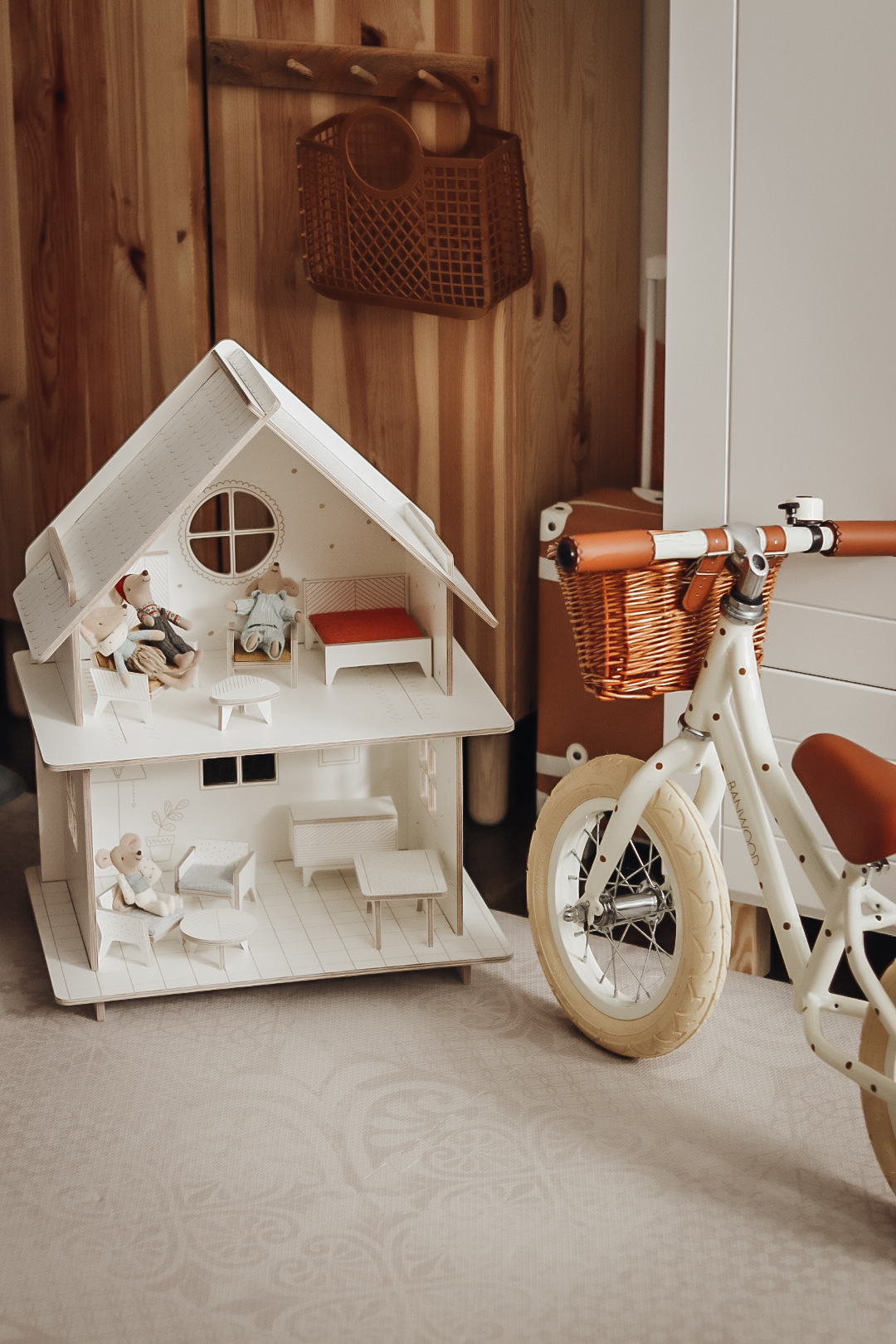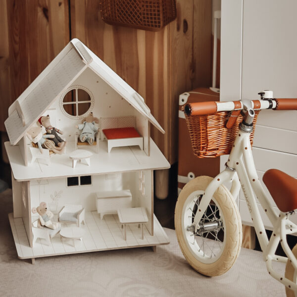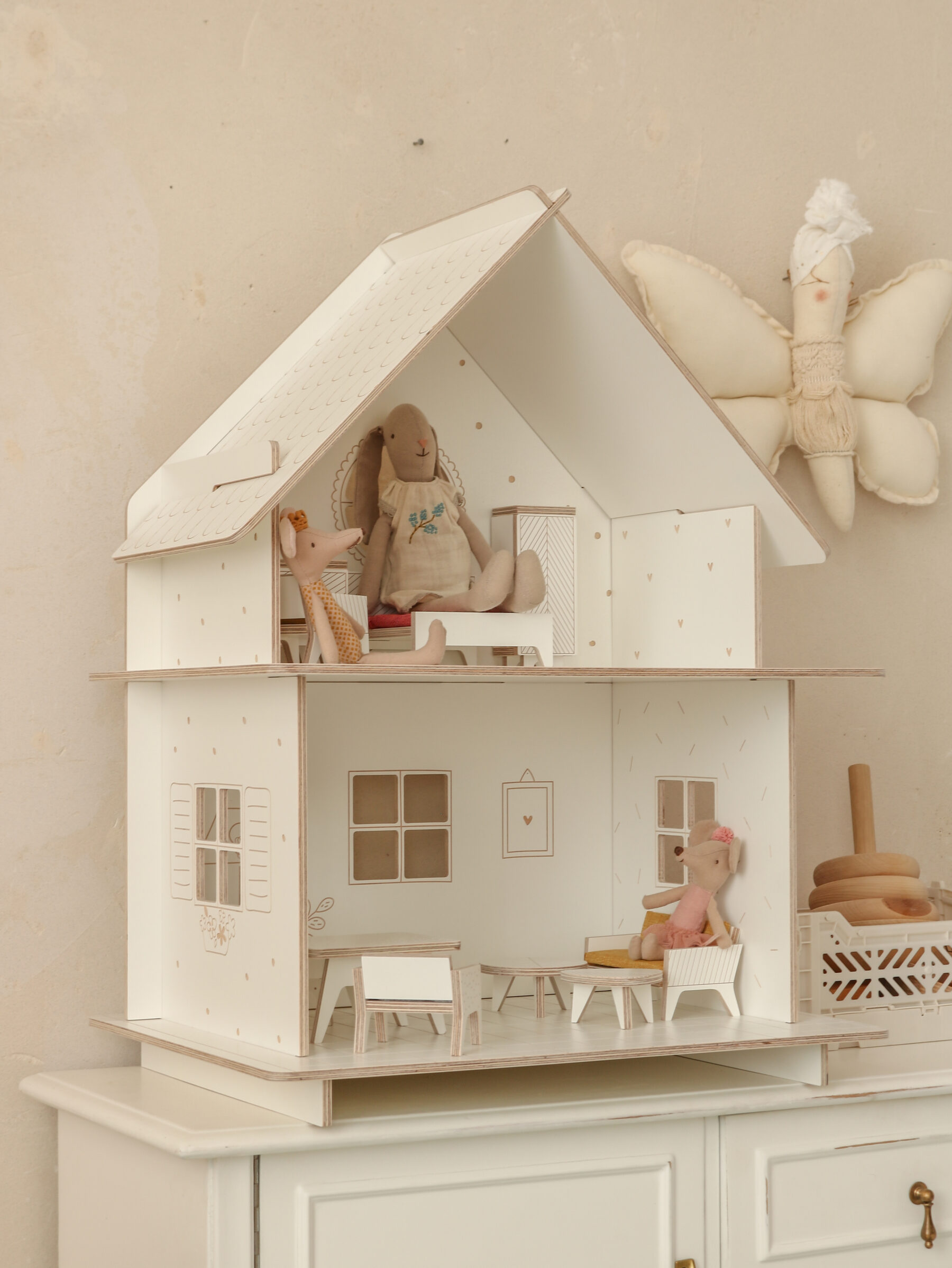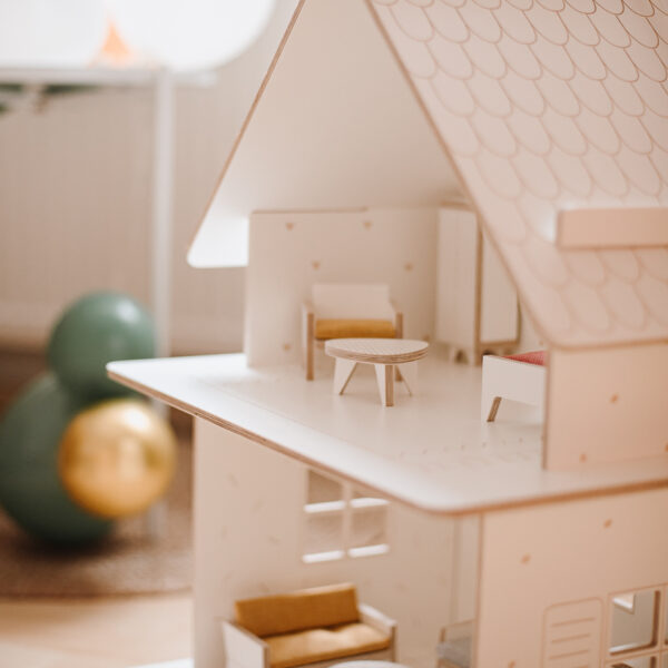 Holz Puppenhaus mit Möbel-set 10-teilig weiss – klassisch und zeitlos für Generationen!