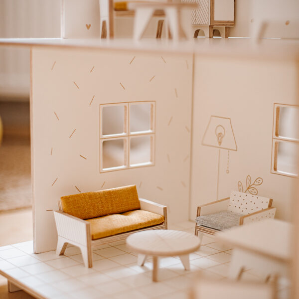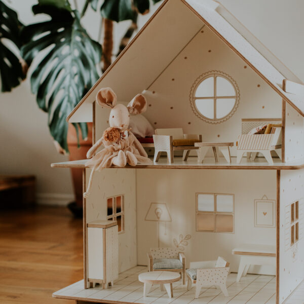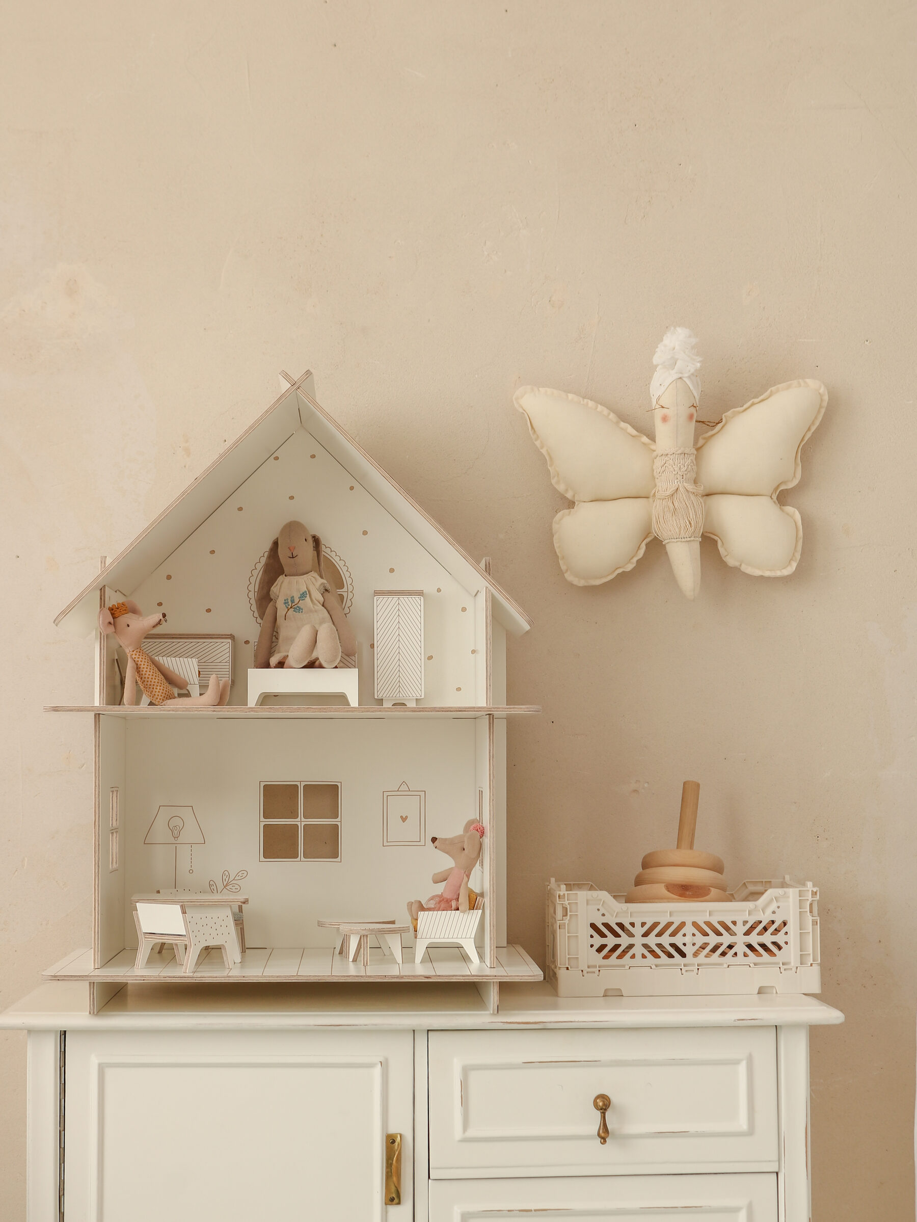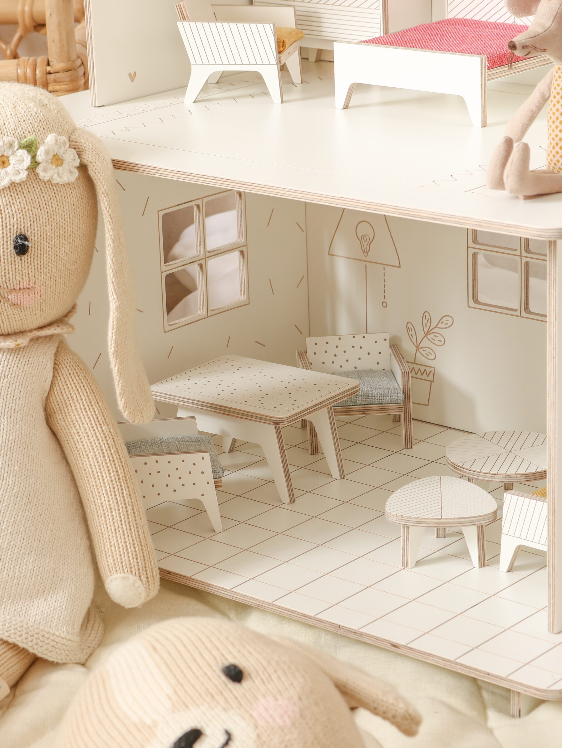 Holz Puppenhaus mit Möbel-set 10-teilig weiss – klassisch und zeitlos für Generationen!