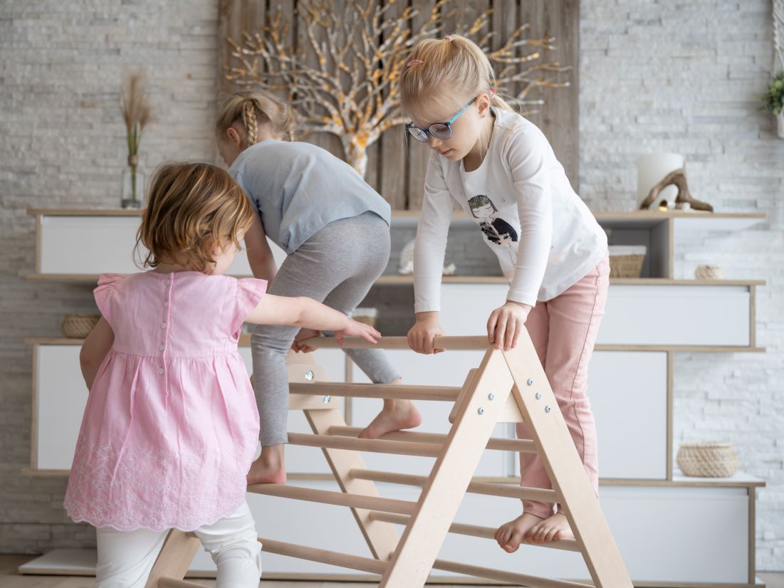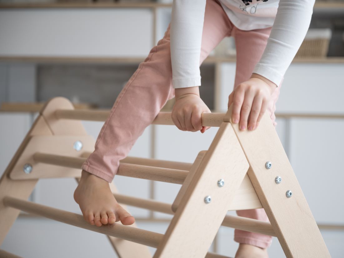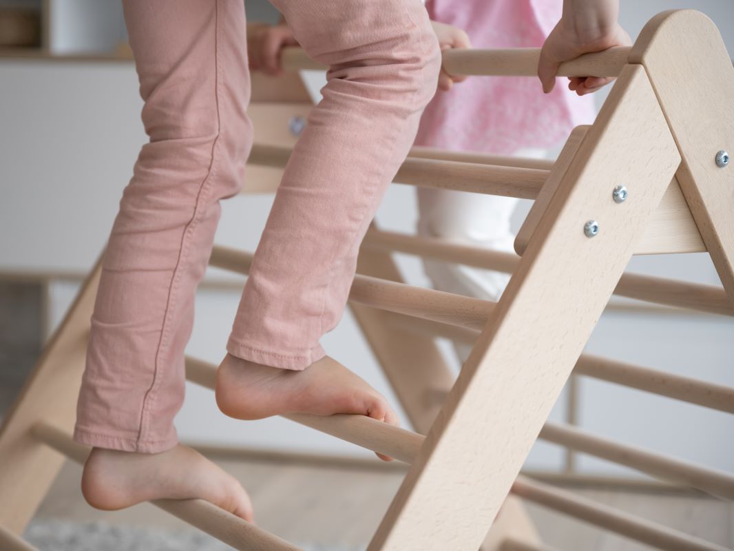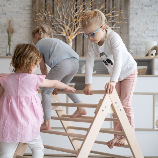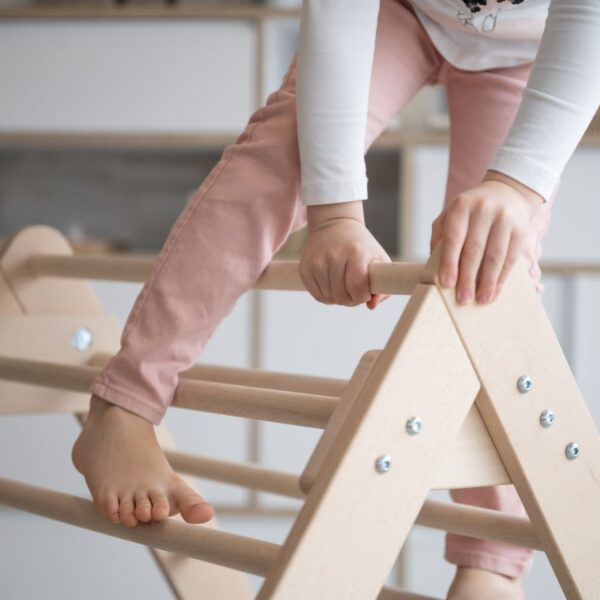 - Ein Kletterdreieck nach Pikler fördert die Motorik, den Gleichgewichtssinn und stärkt die Muskeln