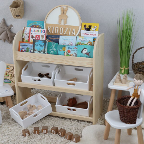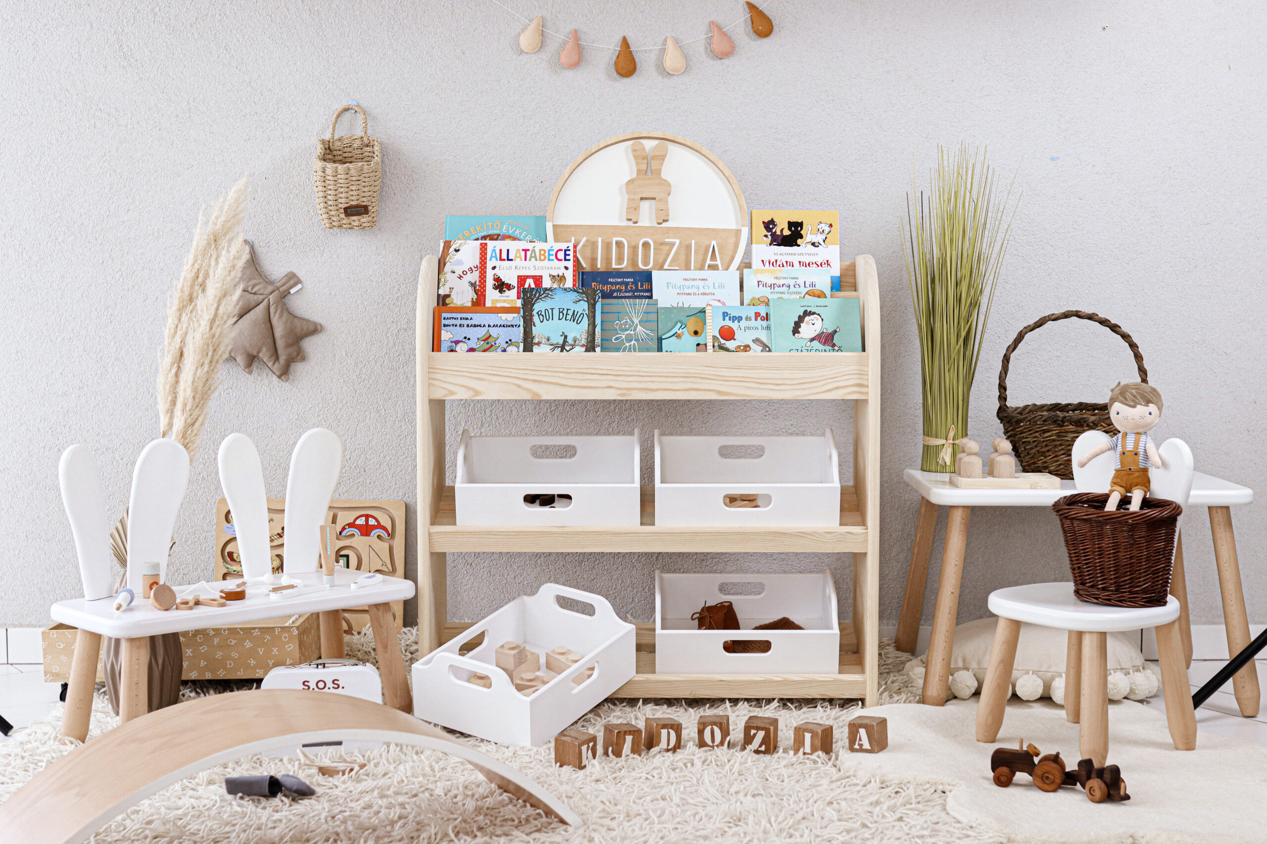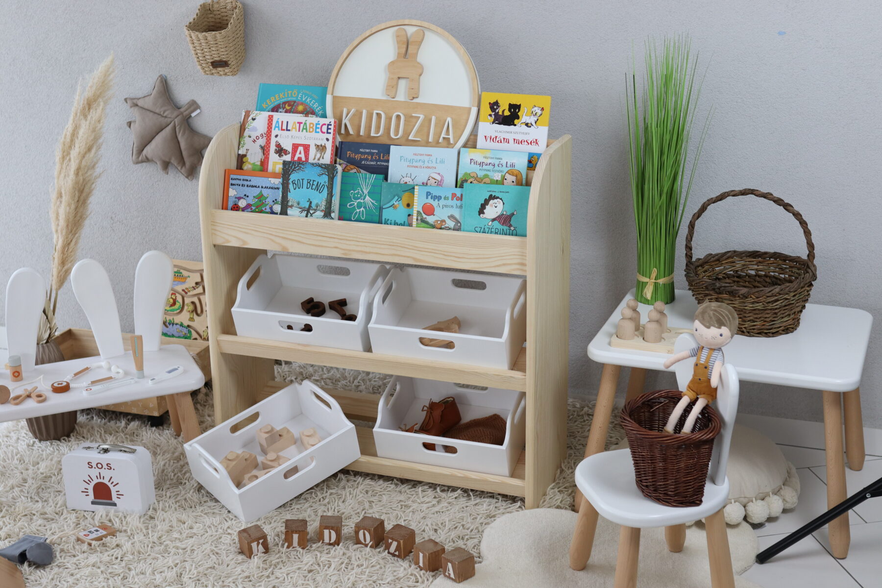 Kidozia PANDA Montessori Kinderregal für Spielzeuge mit 4 Truhen