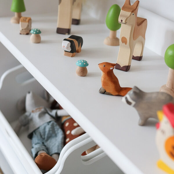 Offene Kinderregale, Bücherregale, Wandregale und Kleiderschränke auf Augenhöhe laden Kinder ein, selbst aktiv zu werden. Alles ist sichtbar, erreichbar und übersichtlich – das gibt Sicherheit und stärkt die Selbstständigkeit. Und ja: auch das Aufräumen klappt damit oft besser.