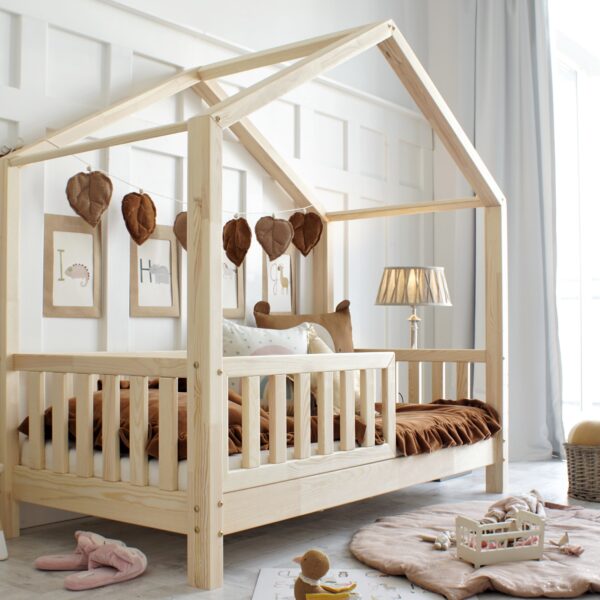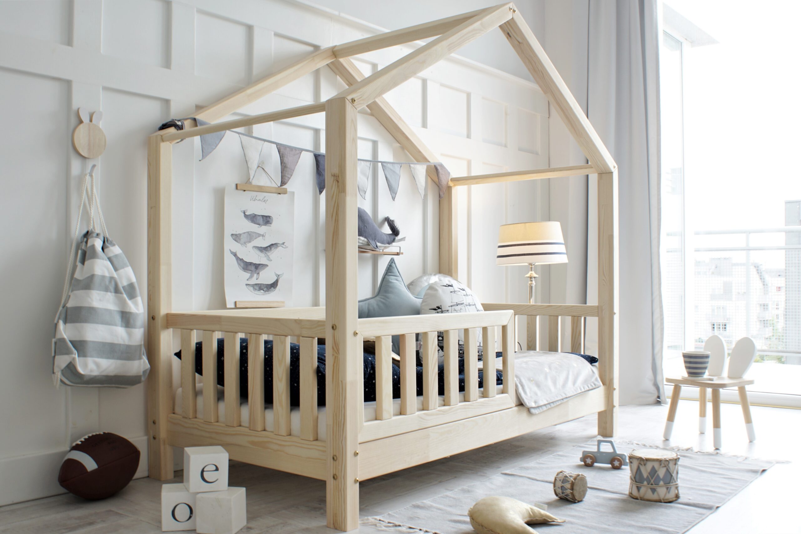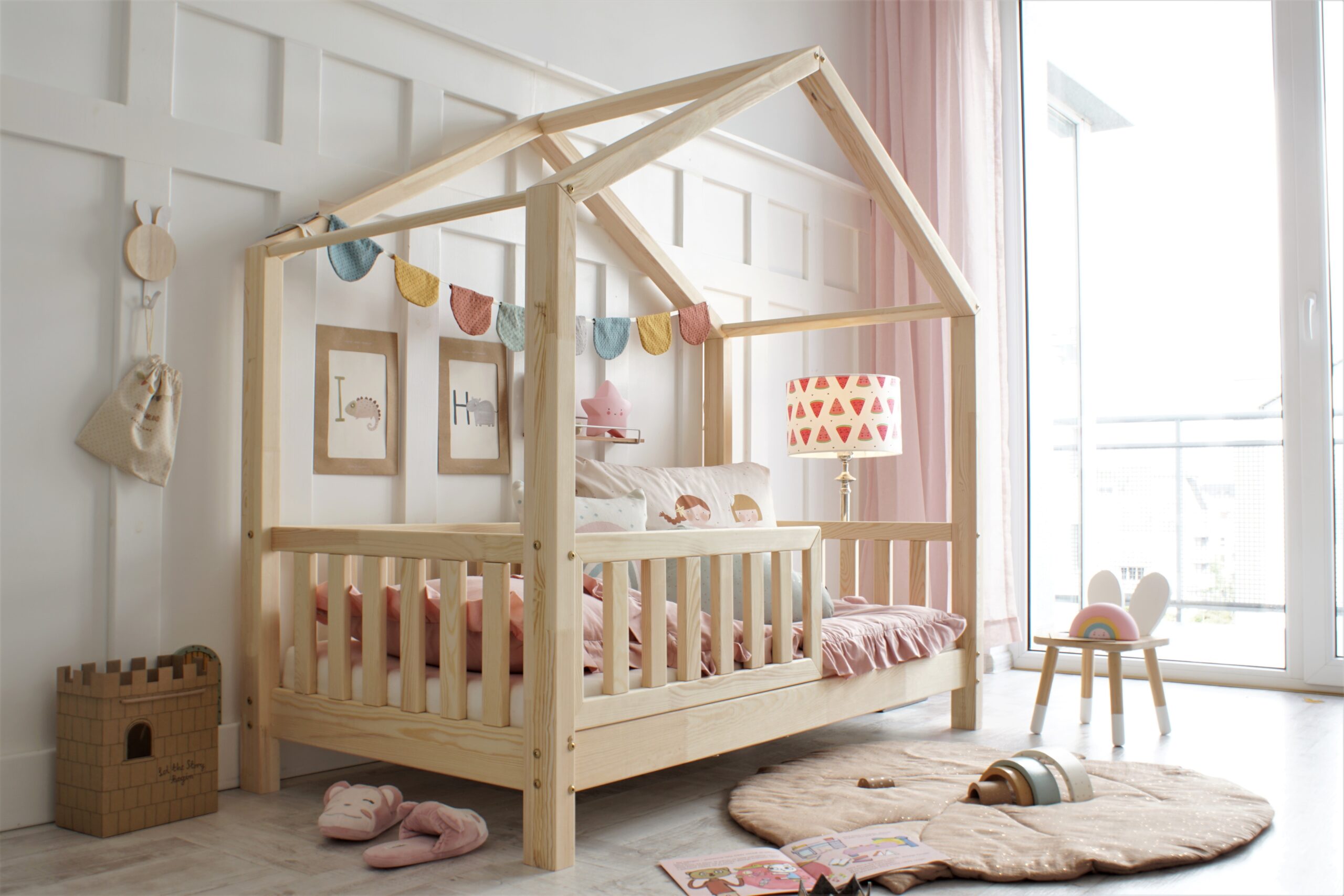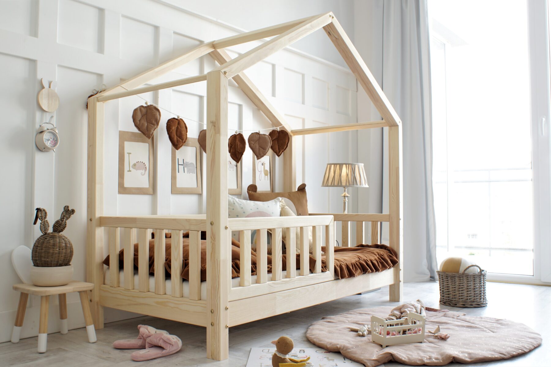 - Die Matratze passt ca. 3 cm in den Bettrahmen hinein. Mit einer 14 cm dicken Matratze schläft das Kind in einer Höhe von ca. 30 cm