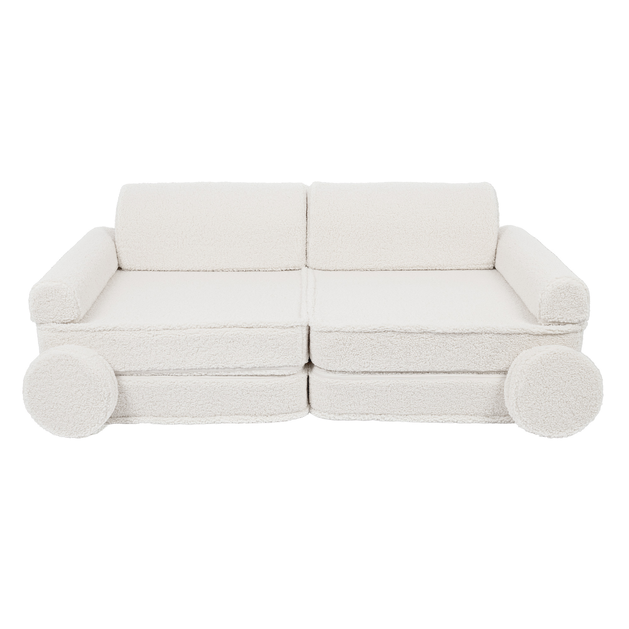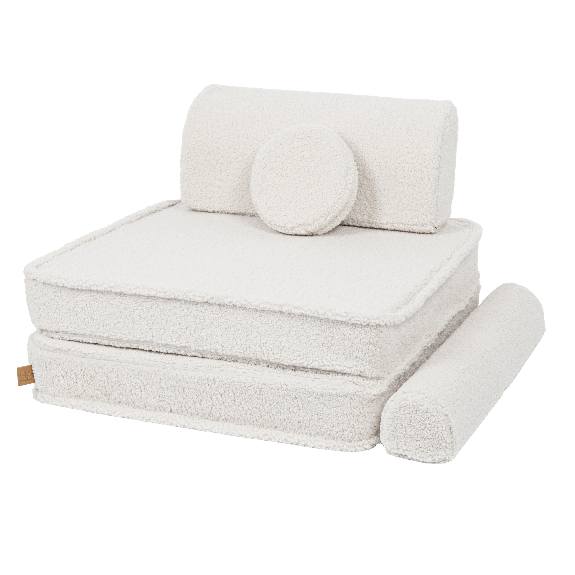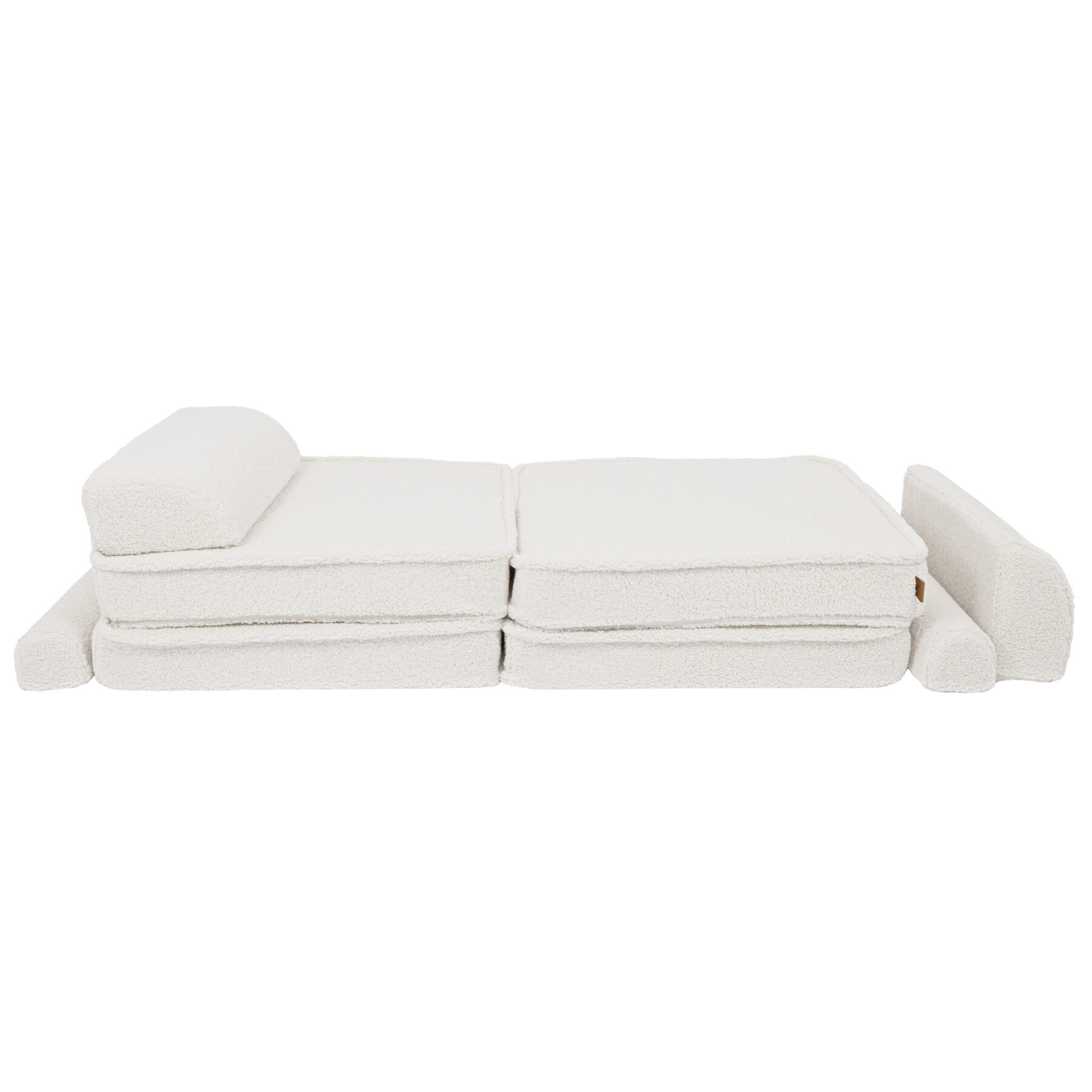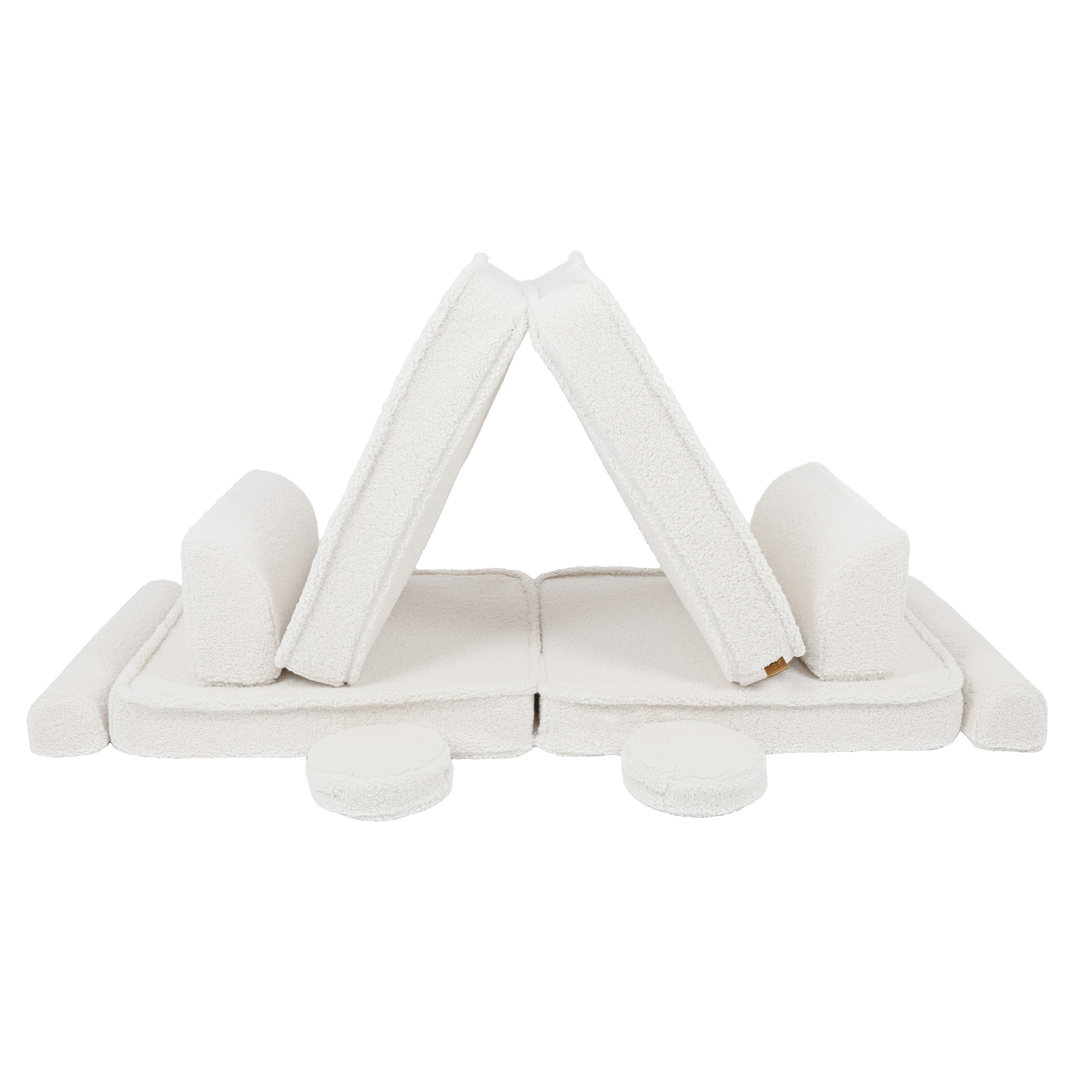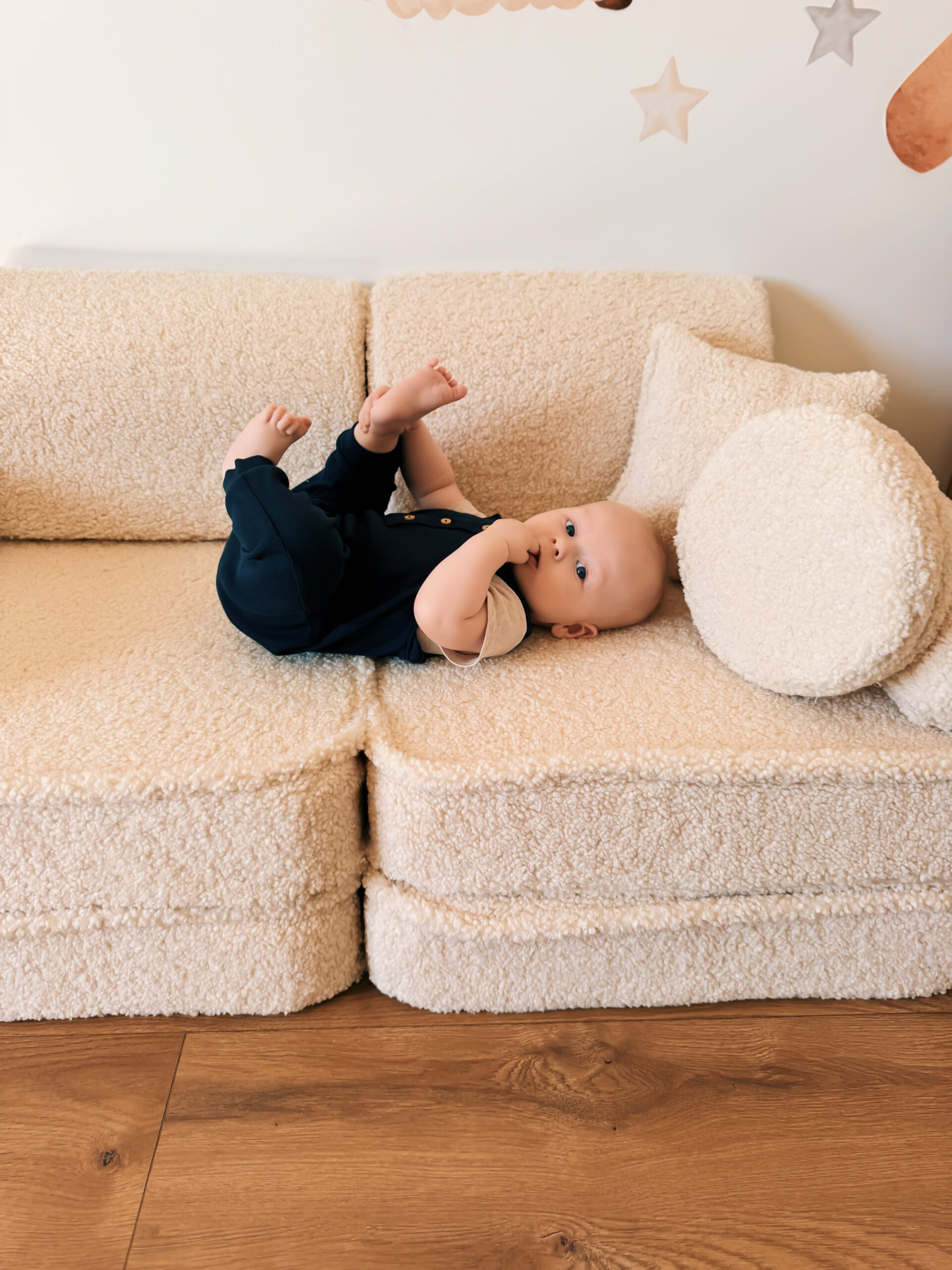 Ein Sofa, das mehr kann als nur Sitzen: das bietet die größte Variante unserer modularen Sofas und besteht aus 10 Elementen, die du immer wieder neu zusammenstellen kannst. Ob gemütliche Leseecke, abenteuerliche Spielburg oder spontaner Schlafplatz – hier entsteht im Handumdrehen genau der Raum, den dein Kind gerade braucht.