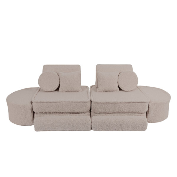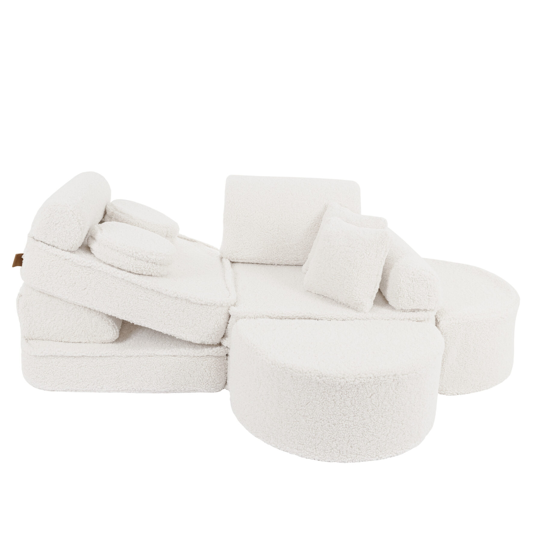 12 Elemente, grenzenlos kombinierbar – mal klassisches Sofa, mal Kuschelsessel, mal Spielhöhle