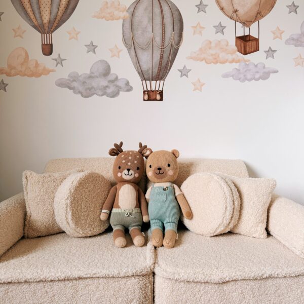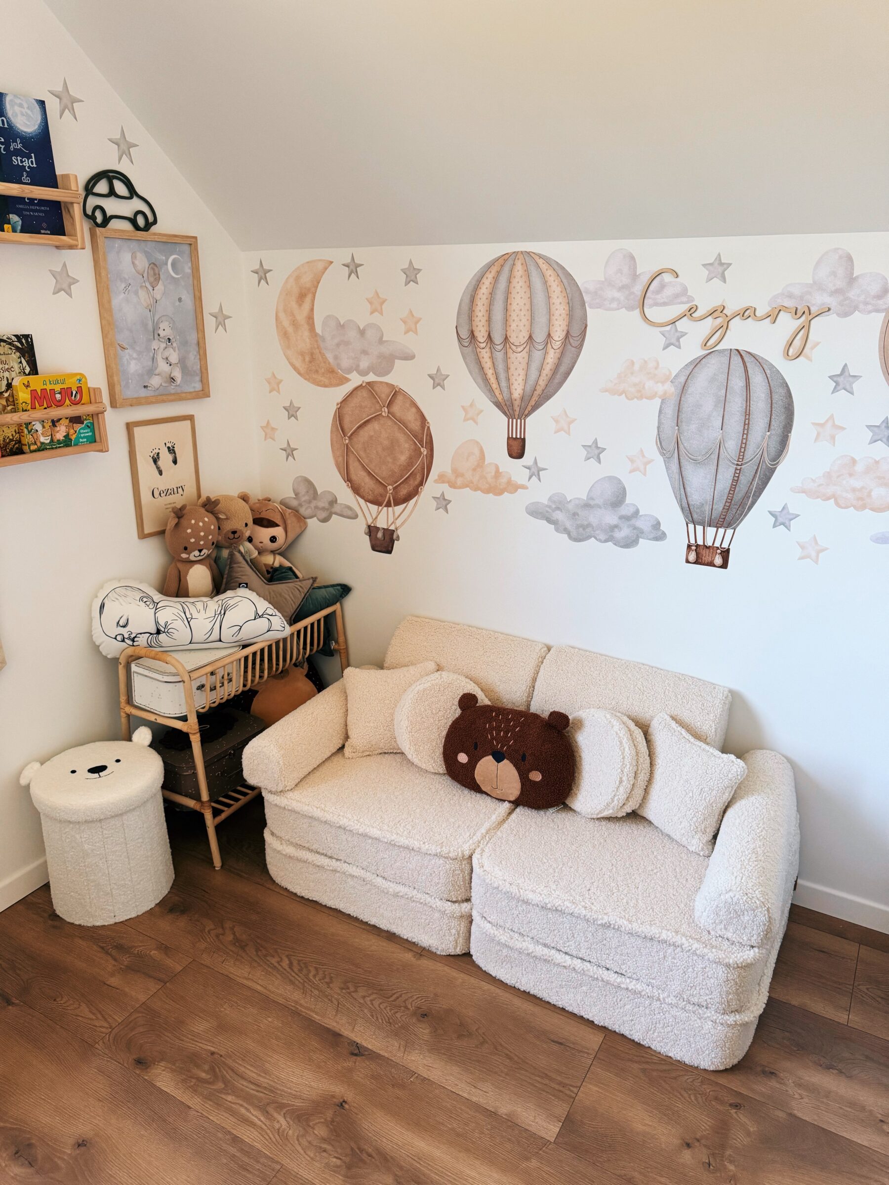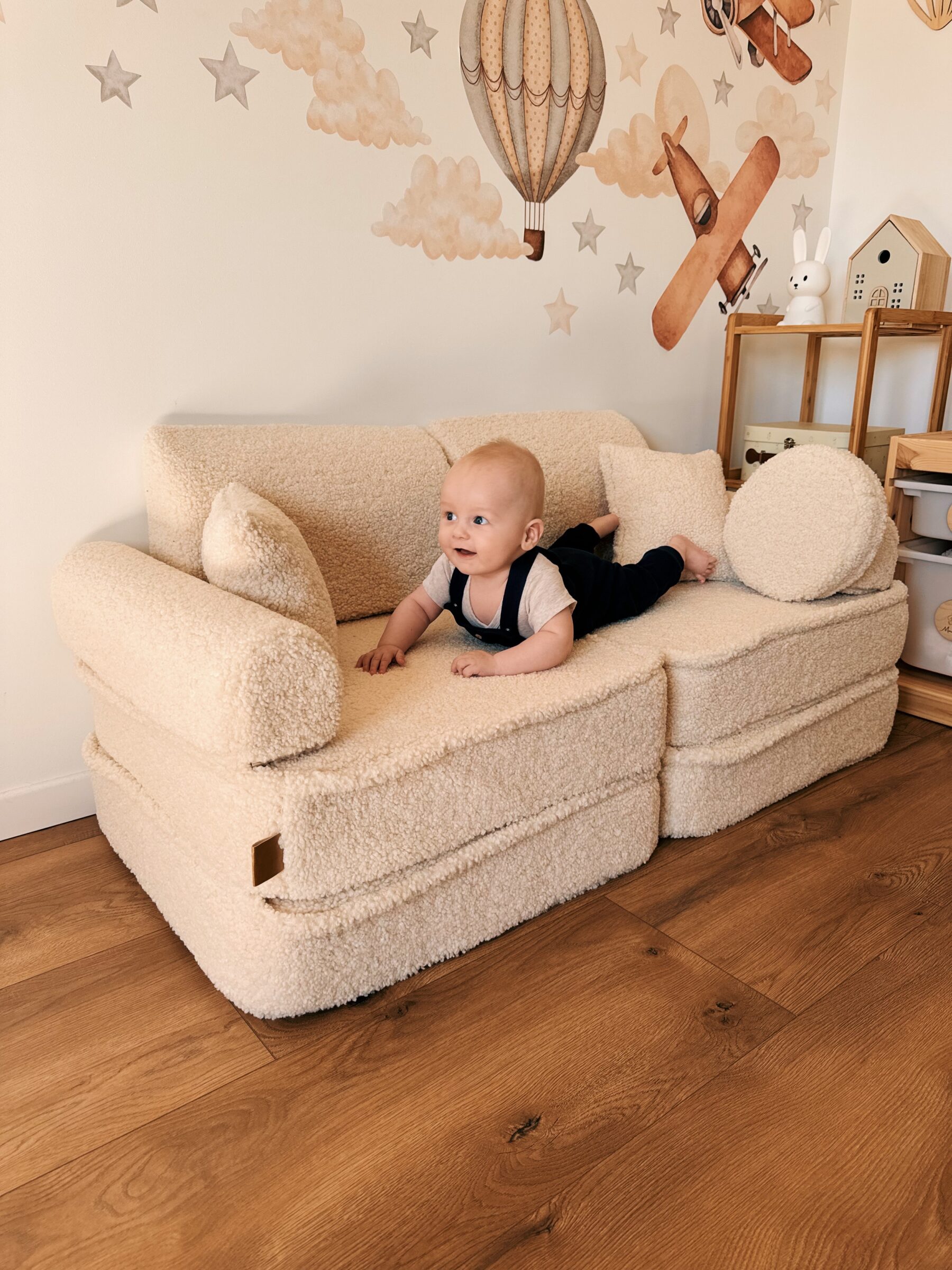 Ein Sofa, das mehr kann als nur Sitzen: das bietet die größte Variante unserer modularen Sofas und besteht aus 12 Elementen, die du immer wieder neu zusammenstellen kannst. Ob gemütliche Leseecke, abenteuerliche Spielburg oder spontaner Schlafplatz – hier entsteht im Handumdrehen genau der Raum, den dein Kind gerade braucht.