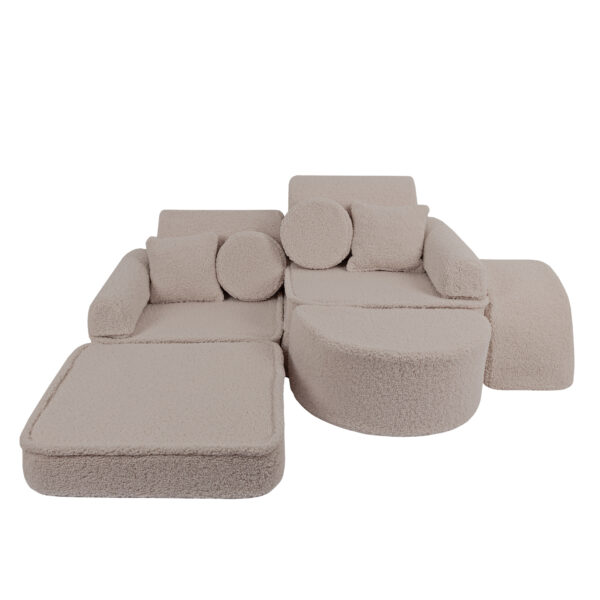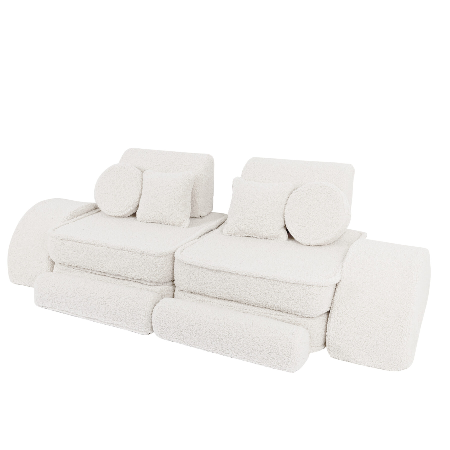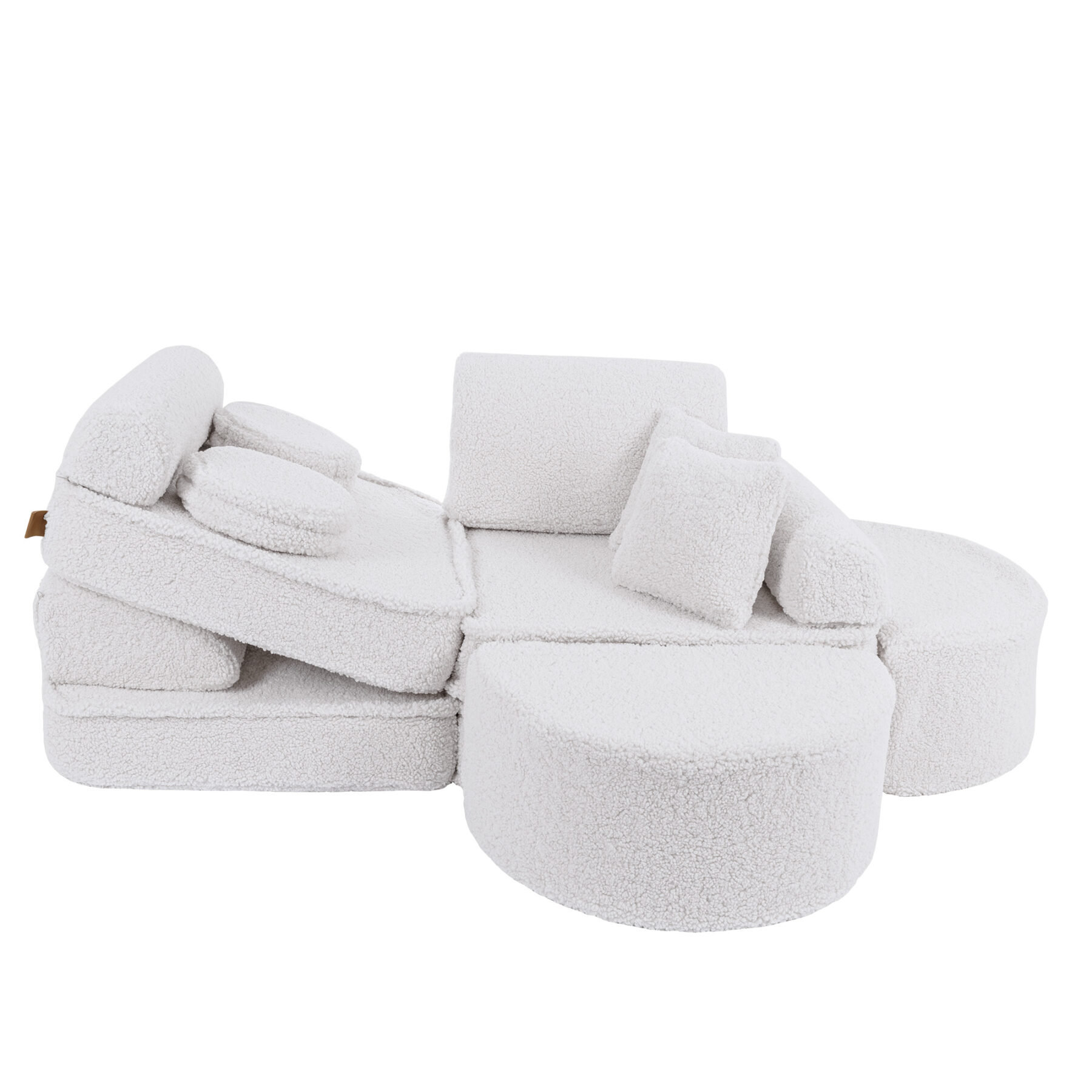 12 Elemente, grenzenlos kombinierbar – mal klassisches Sofa, mal Kuschelsessel, mal Spielhöhle