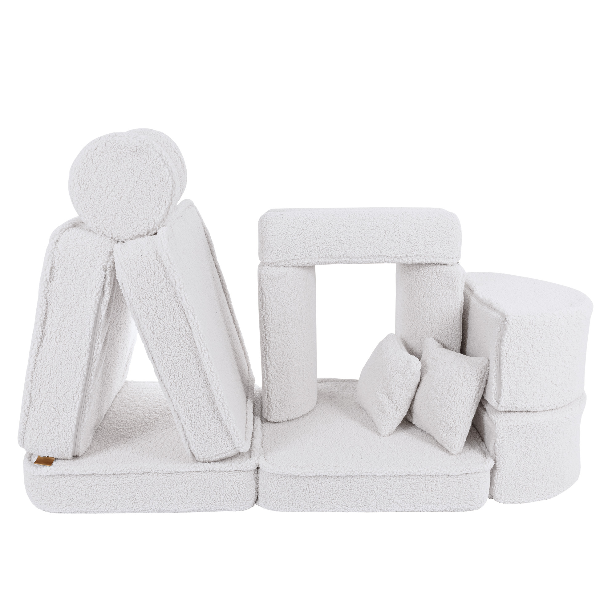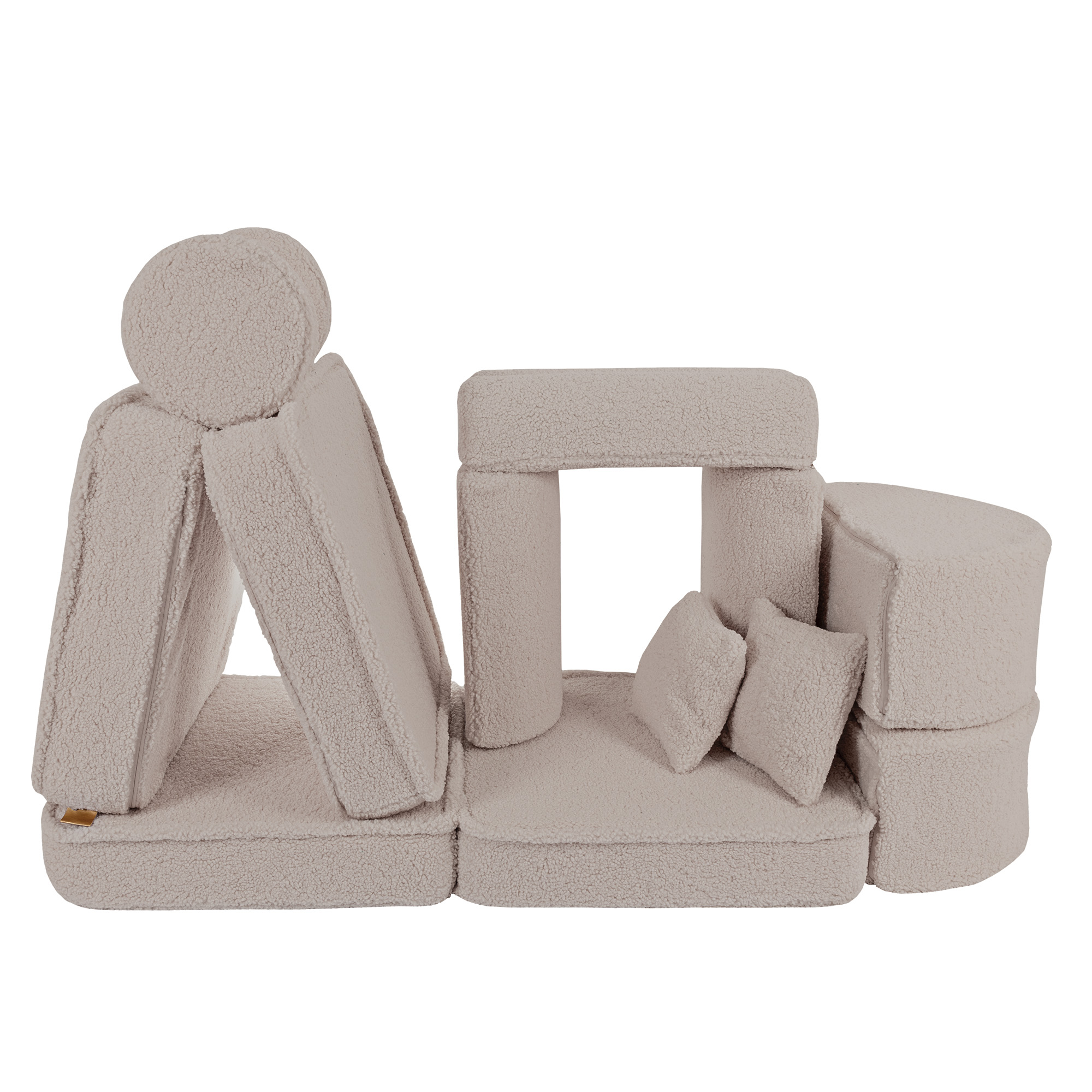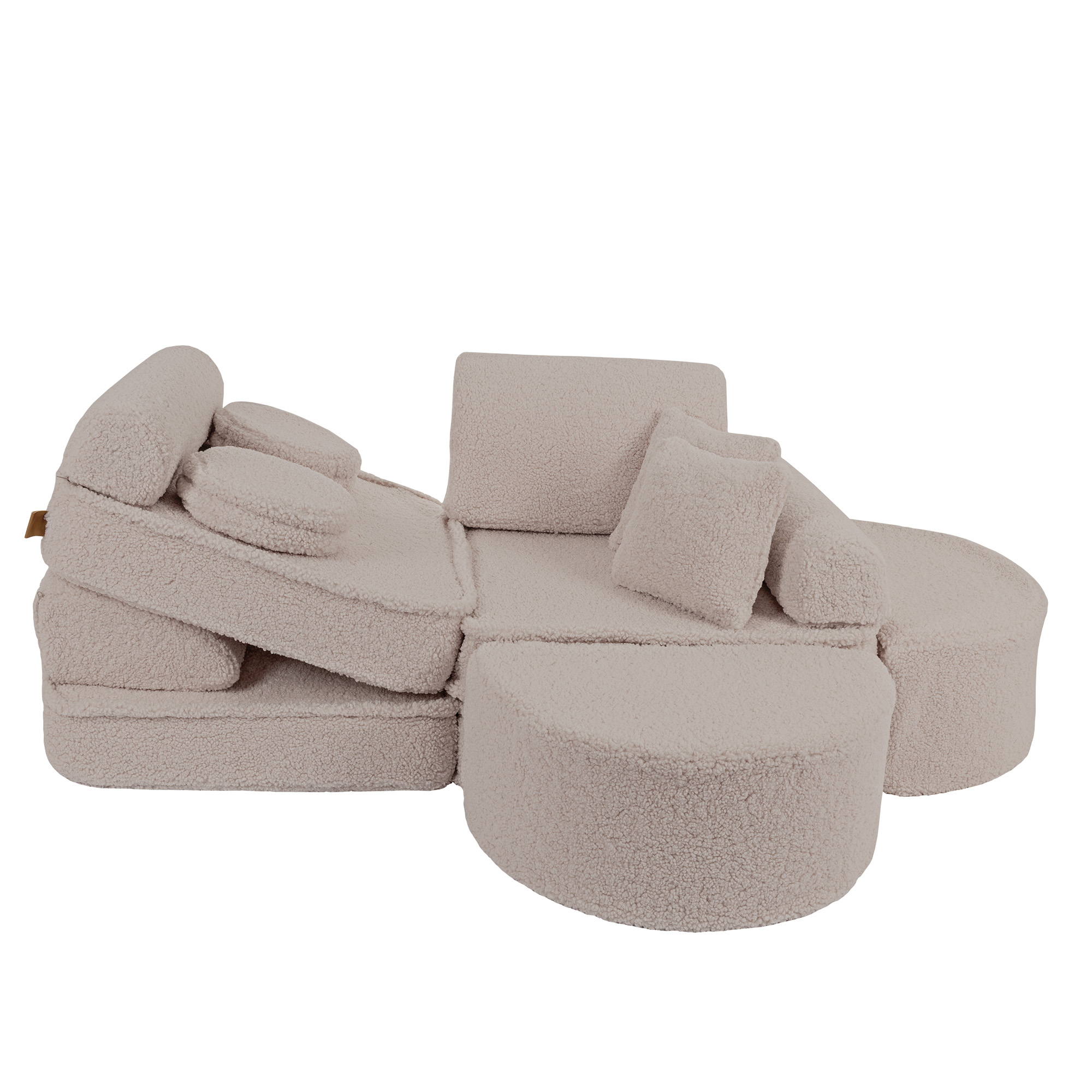 12 Elemente, grenzenlos kombinierbar – mal klassisches Sofa, mal Kuschelsessel, mal Spielhöhle