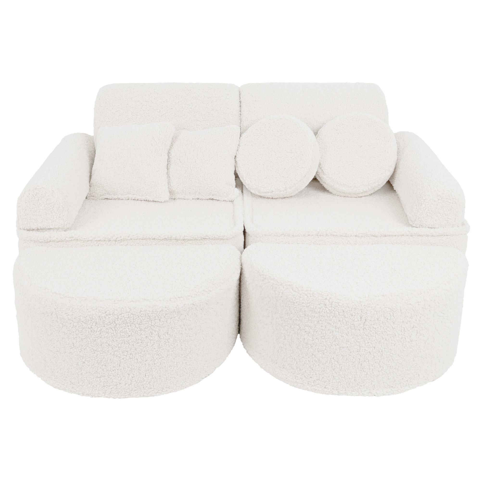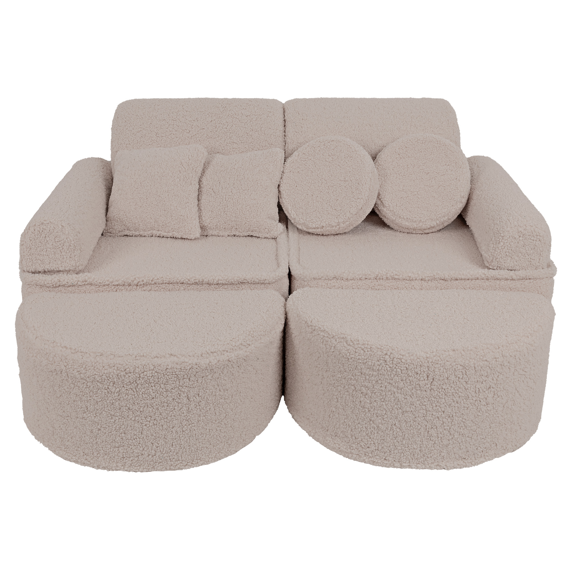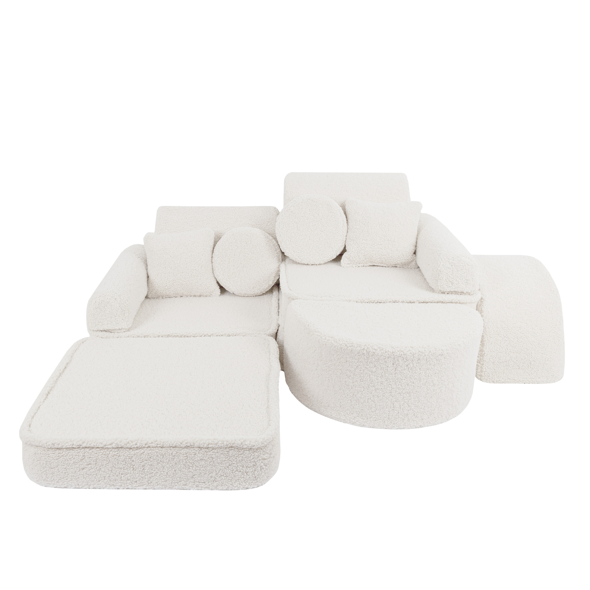 12 Elemente, grenzenlos kombinierbar – mal klassisches Sofa, mal Kuschelsessel, mal Spielhöhle