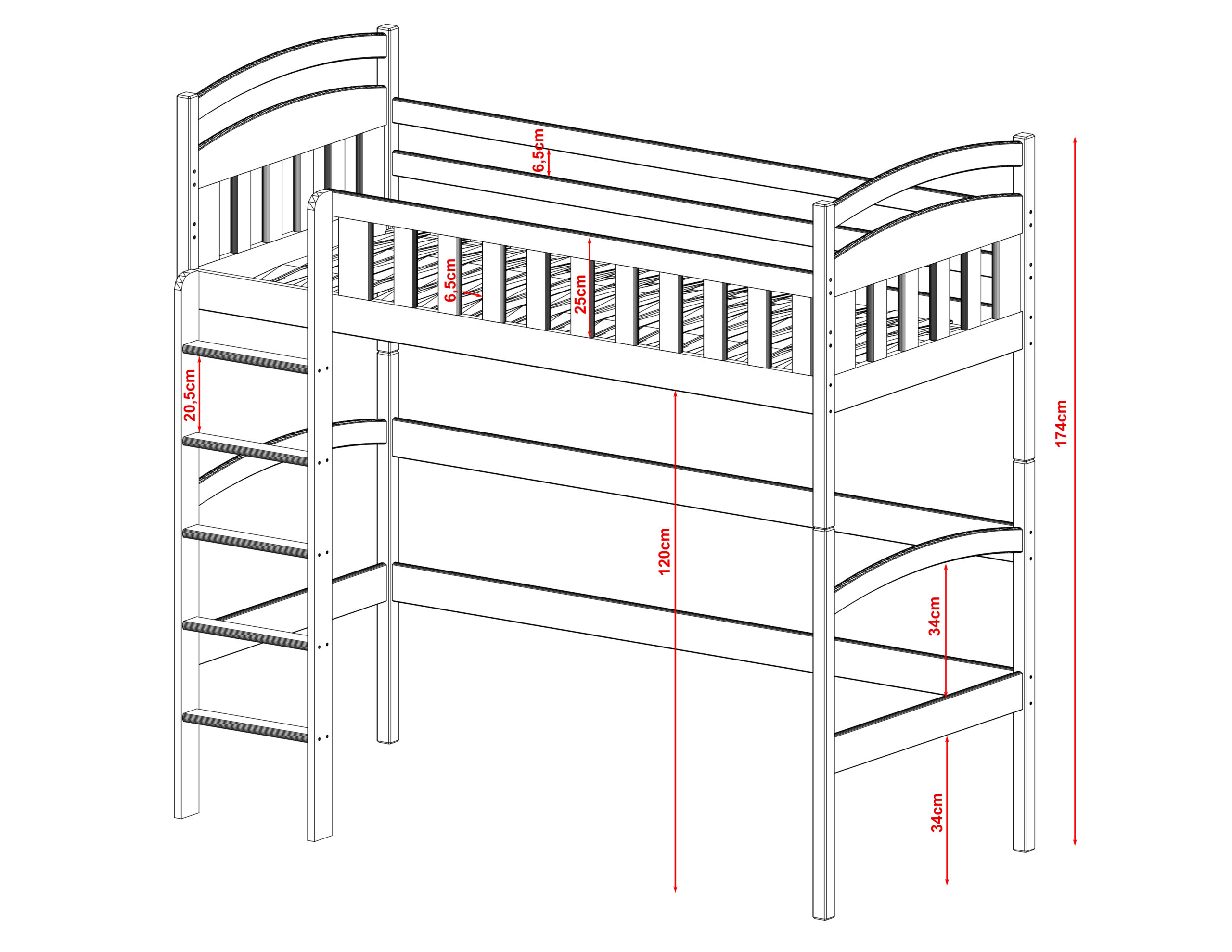 Antwort: Ja – alle Kanten sind abgerundet, die Oberflächen sind mit ökologischen, schadstofffreien Farben lackiert. Die Betten entsprechen den europäischen Sicherheitsnormen (DIN-StandardREACH-Verordnung) und sind besonders stabil konstruiert.