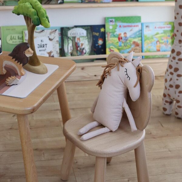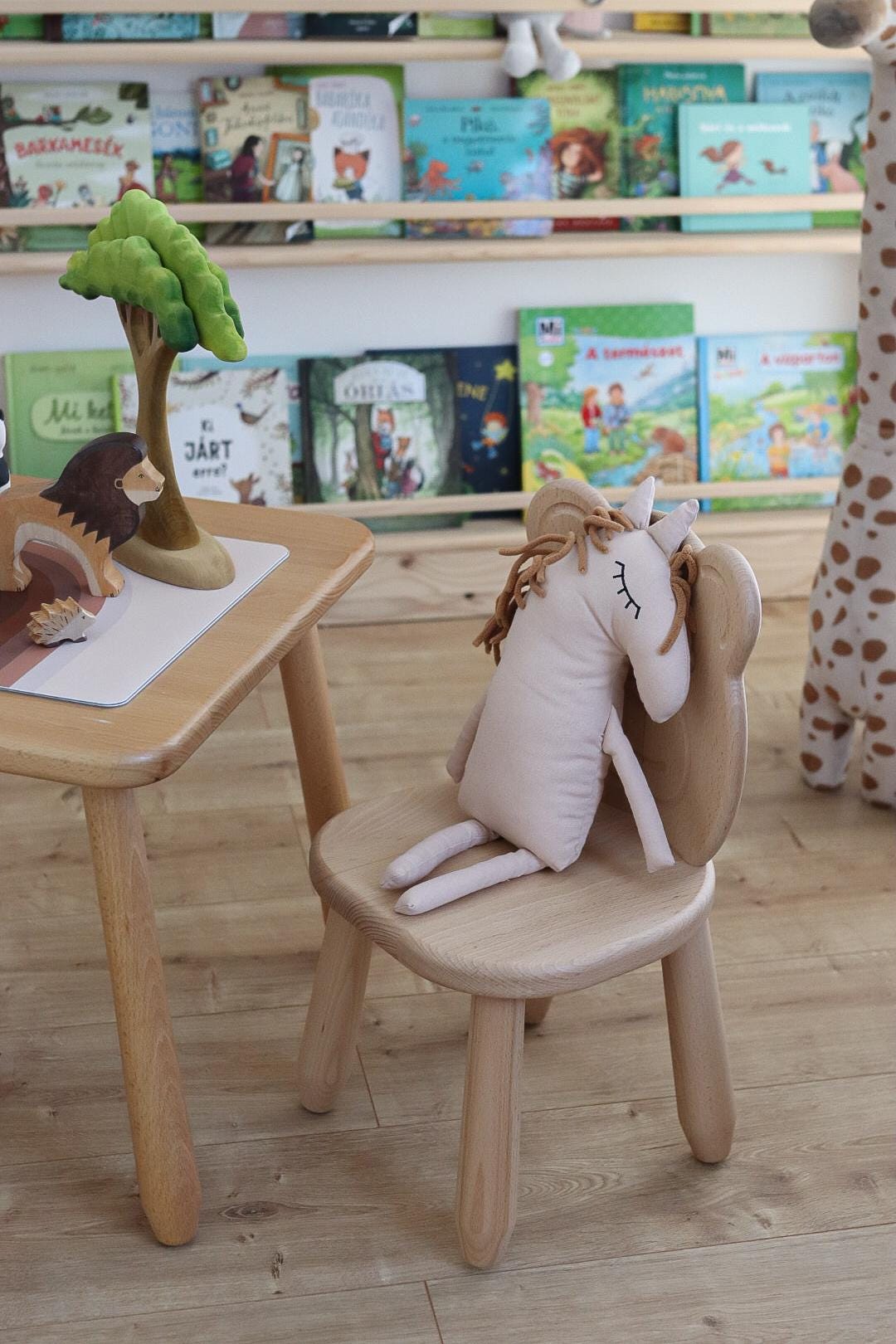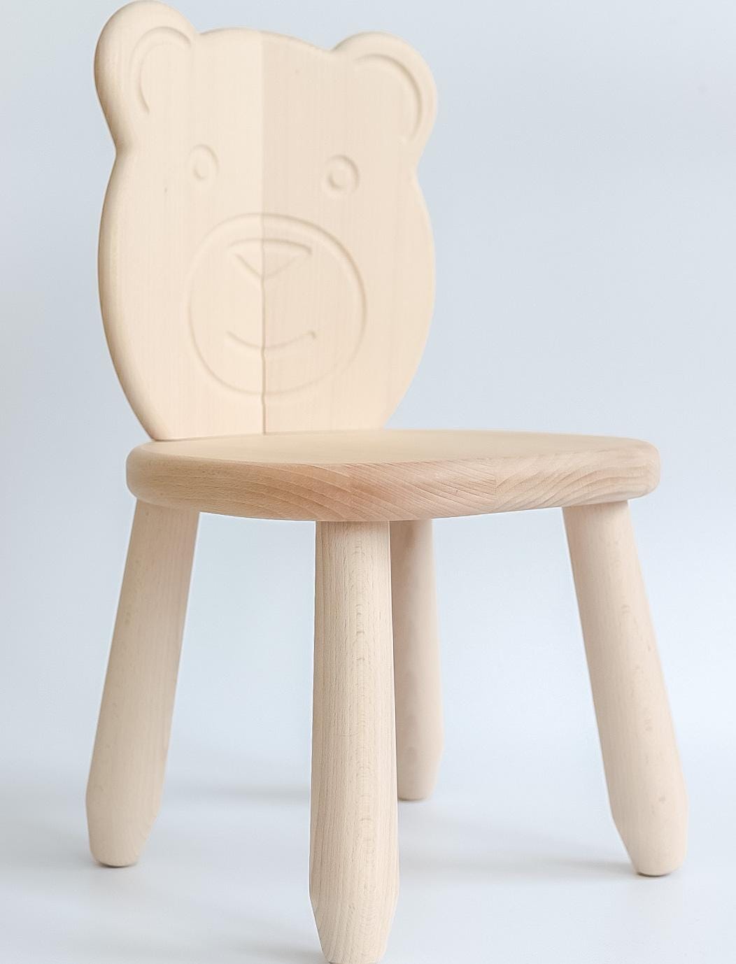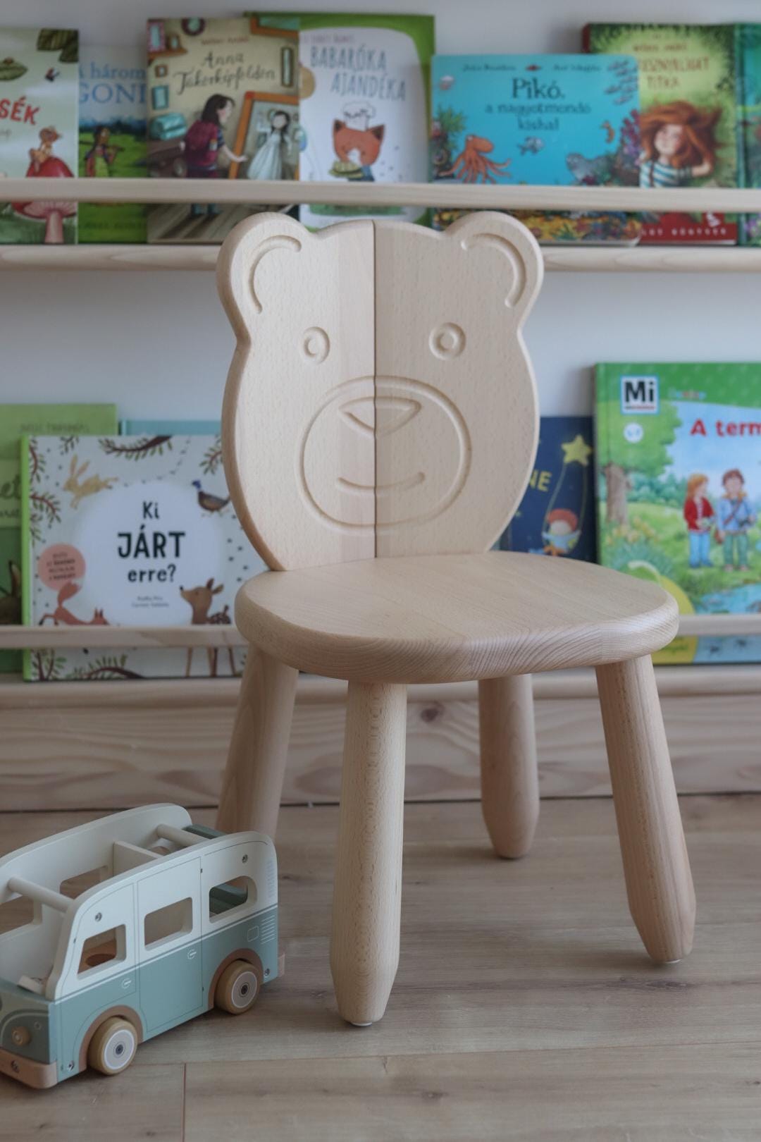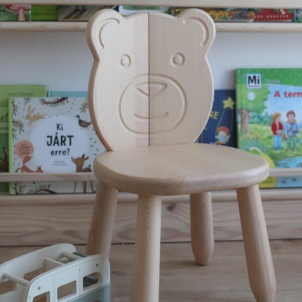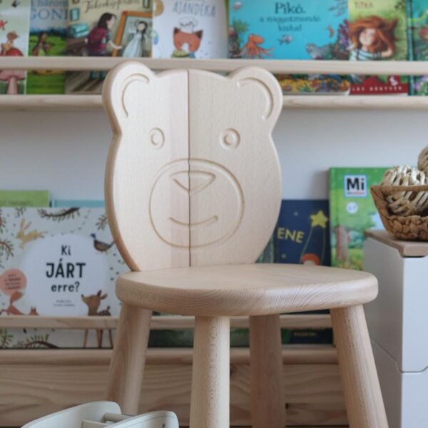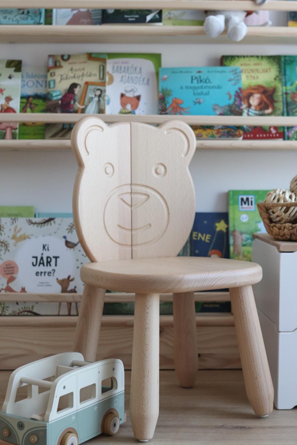 Der Stuhl mit Bärenrückenlehne bringt sofort Gemütlichkeit ins Kinderzimmer. Ideal für kleine Tierfans oder ein Waldtiere-/Woodland-Thema.