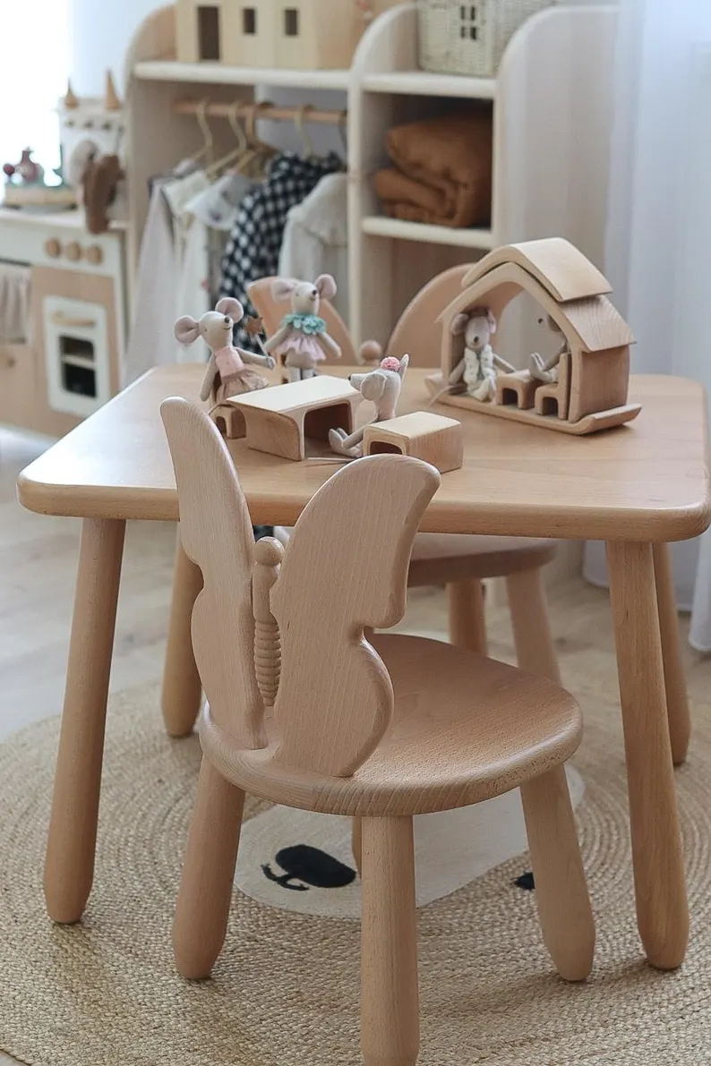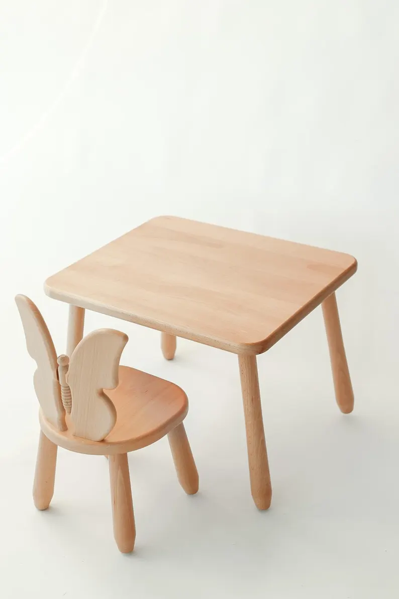 Montessori Kindertisch-Set „Natur Butterfly“ – 1 Tisch & 2 Stühle aus Buche