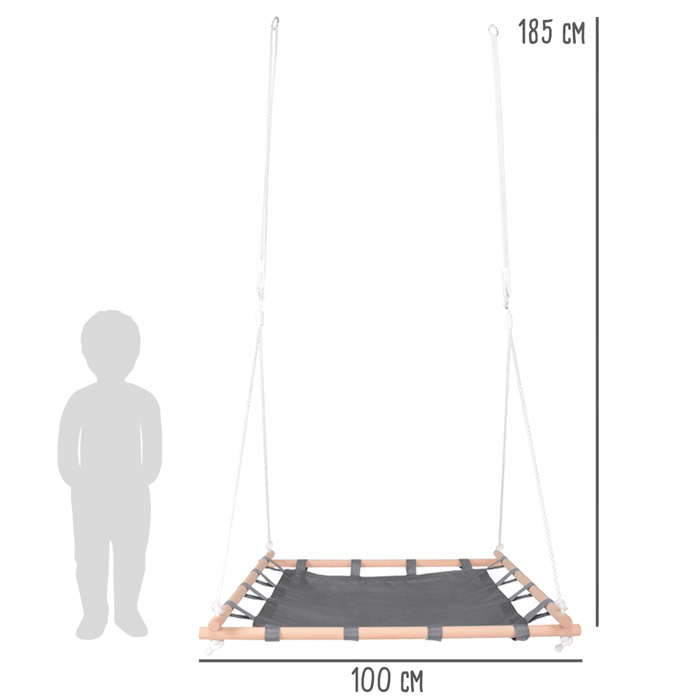 Maße cm: | Seil Länge: ca. 185 cm, Schaukel ca. 100 x 100 x 6,5 cm, max. Belastbarkeit 100 kg |