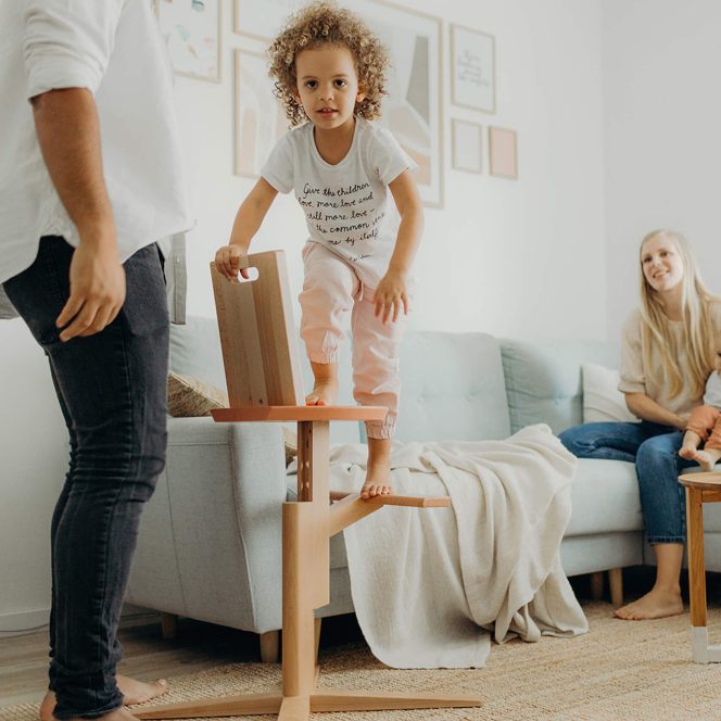 Dieser Kinderstuhl bietet deinem Kind ab etwa 3 Jahren einen gemütlichen Platz am Familientisch – dort, wo das Leben spielt. Er wächst einfach mit und sorgt viele Jahre lang für bequemes und sicheres Sitzen – bis etwa zum 10. Lebensjahr.