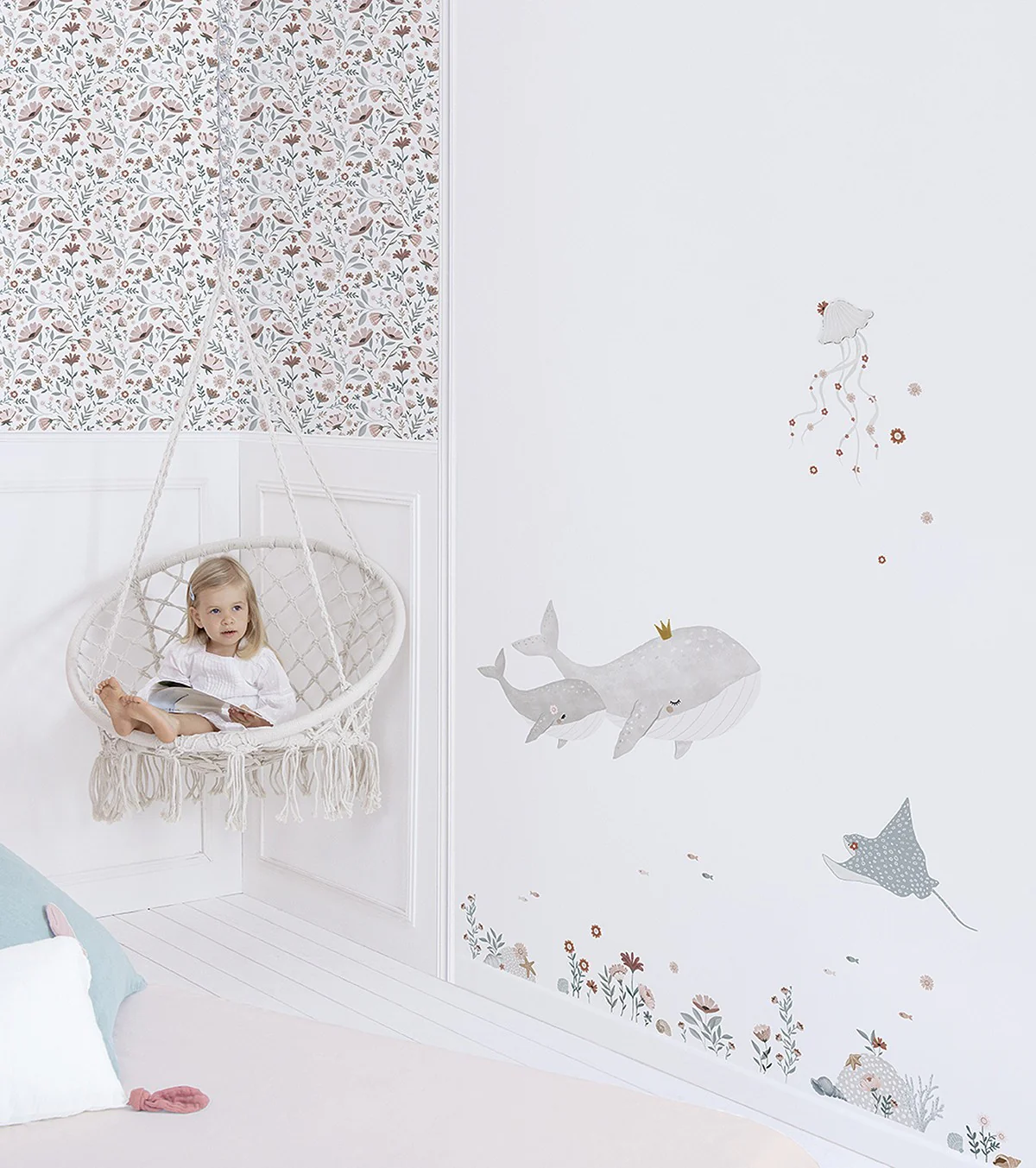 Mit den charmanten Wandaufklebern des französischen Herstellers Lilipinso kannst du kinderleicht und preisgünstig eine fröhliche Atmosphäre in deinem Zuhause schaffen: Das Set mit den Tieren und Pflanzen des Ozeans ist eine wirklich besondere Dekoration für ein neutrales, schlichtes Kinderzimmer. Die Elemente des Wandtattoos können einzeln angebracht werden, um eine ganz individuelle Komposition zu schaffen. Sie sind strapazierfähig und sehr einfach anzubringen: über der Wickelkommode, an der Bettkante, an der Bodenkante oder wo immer du möchtest.