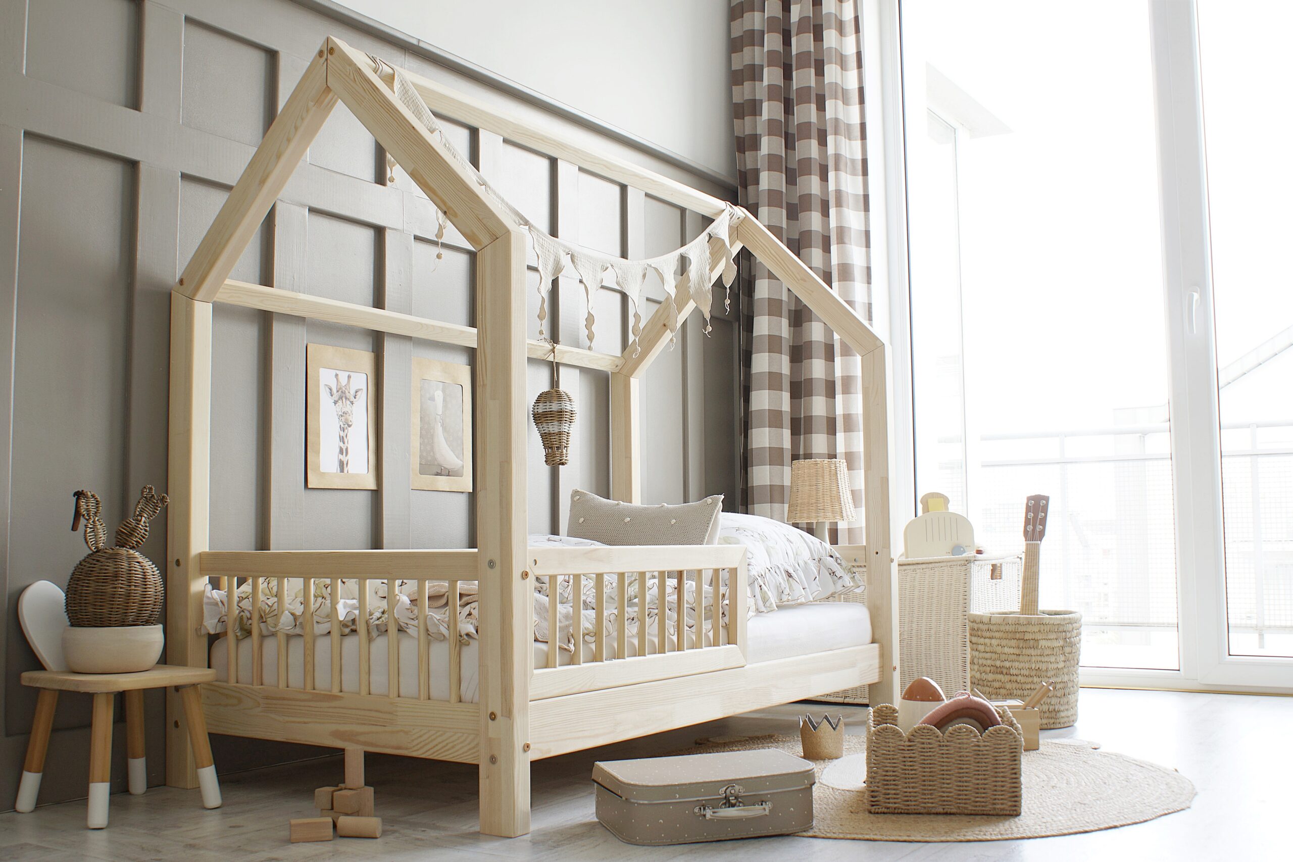 - Die Matratze passt ca. 3 cm in den Bettrahmen hinein. Mit einer 15 cm dicken Matratze schläft das Kind in einer Höhe von ca. 31 cm
