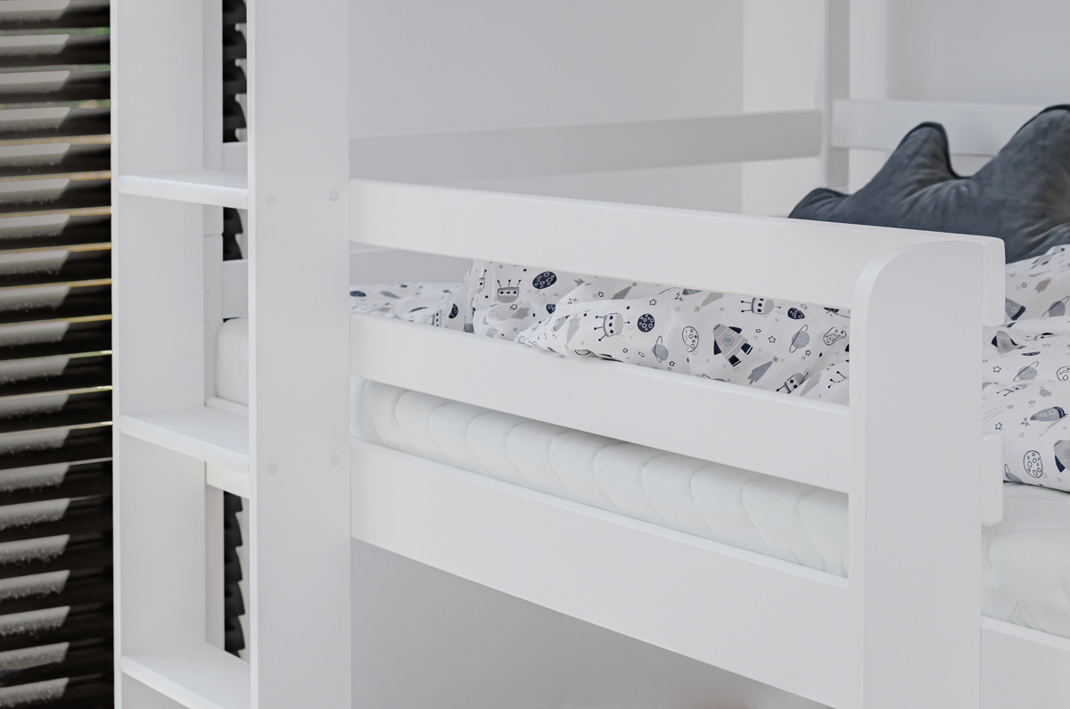 • Obere Etagen sind perfekt für größere Kinder. Die oberen zwei Barrieren sind eingebaut, für unten separat erhaltlich