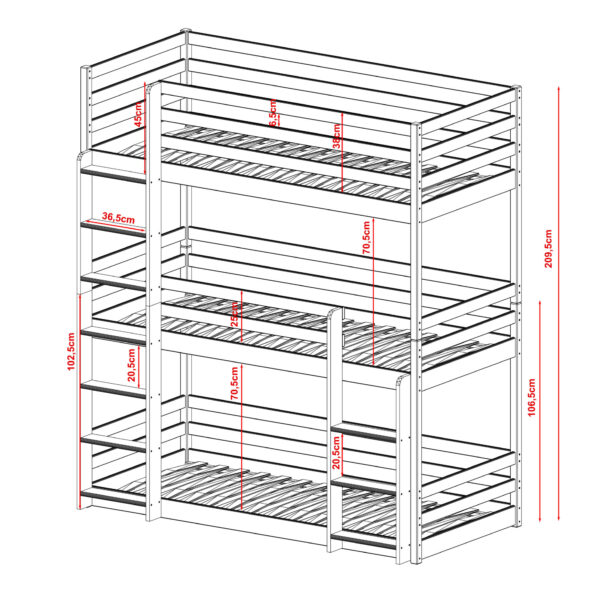 Schreibe die erste Rezension für „TED 3-Stock Etagenbett Kinderbett Bodenbett 90 x 200 cm weiss“
