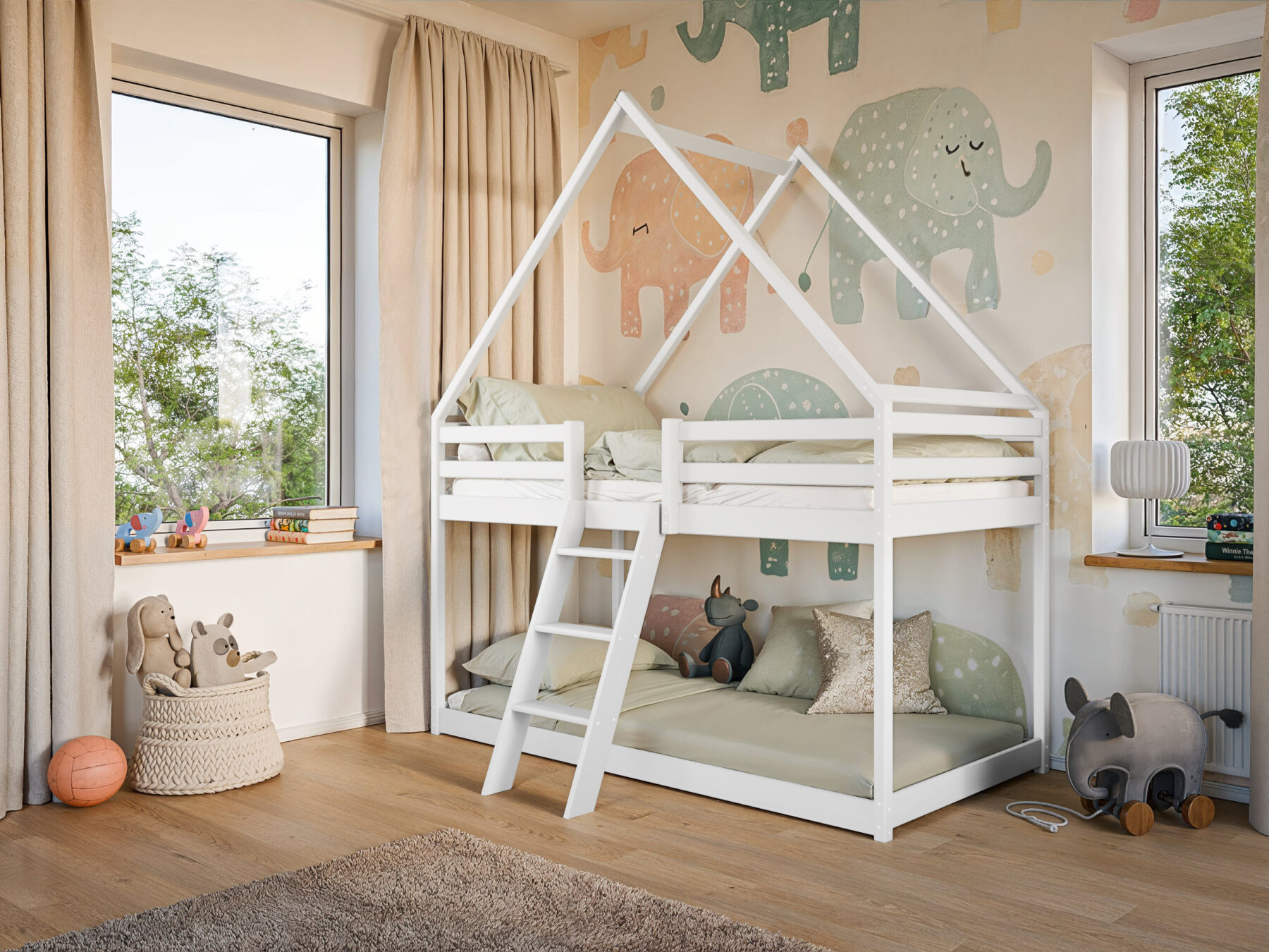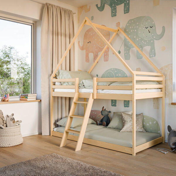 Wir empfehlen die obere Etage ab ca. 6 Jahren – wenn dein Kind sicher klettern kann. Für kleinere Geschwister oder bei wenig Platz sind unsere Etagenbetten mit zwei Schlafebenen eine praktische Lösung. Die untere Ebene mit Rausfallschutz ist auch für kleinere Kinder geeignet.