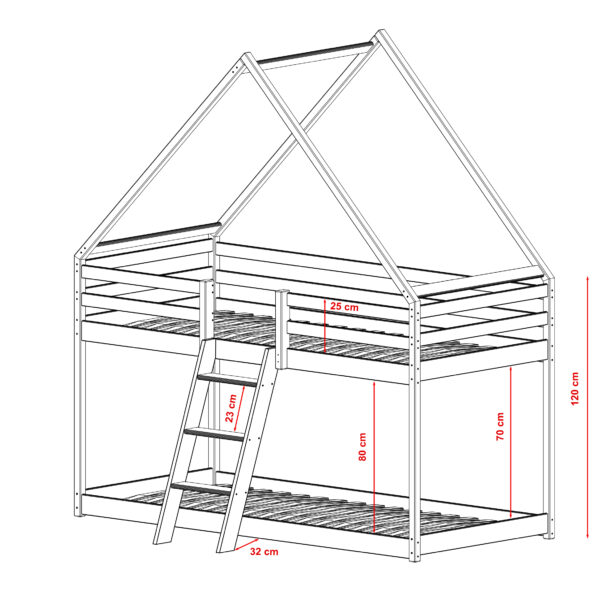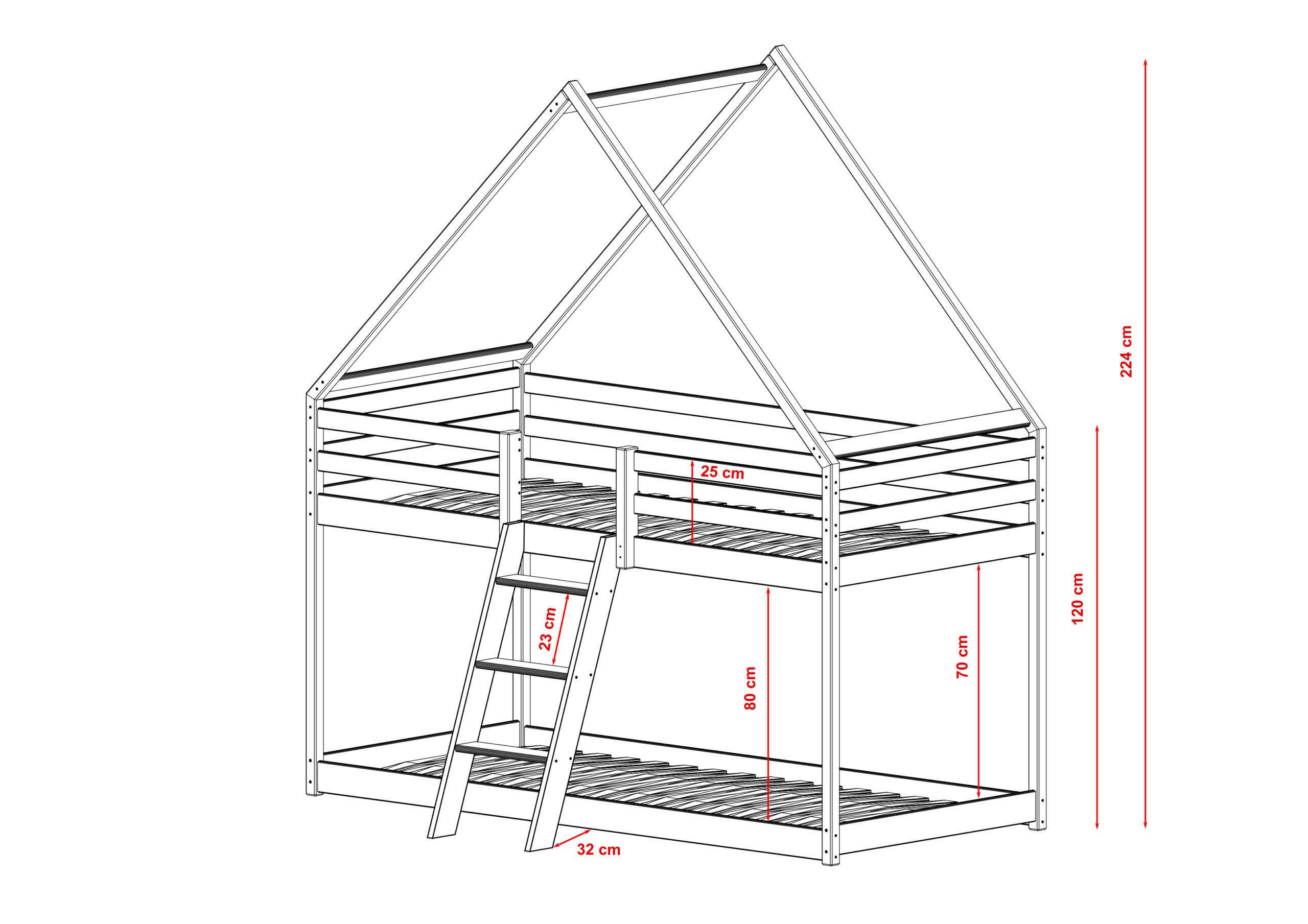 Je nach Modell variiert die Höhe und Länge. Maximale Größe ist 90×200 cm, die Außenmaßen sind immer +8 cm. Bitte beachte auch die Raumhöhe – ideal sind mindestens 2,40 m, damit dein Kind oben bequem sitzen kann. Alle genauen Maße findest du in der Produktbeschreibung.